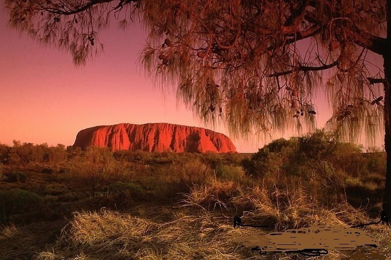 Màu sắc Uluru thay đổi theo ánh sáng. Vào sáng sớm và hoàng hôn, khối đá chuyển từ đỏ sậm sang vàng cam rực rỡ, tạo cảnh tượng ngoạn mục. Ảnh: Pinterest.