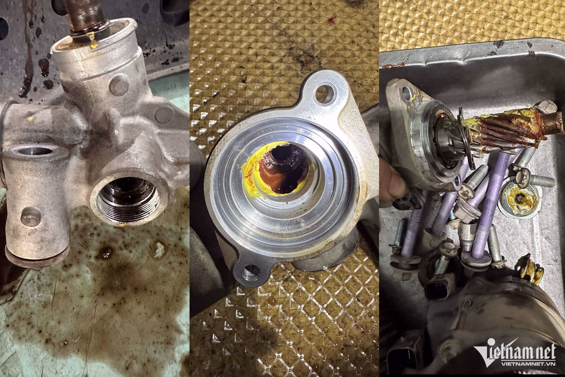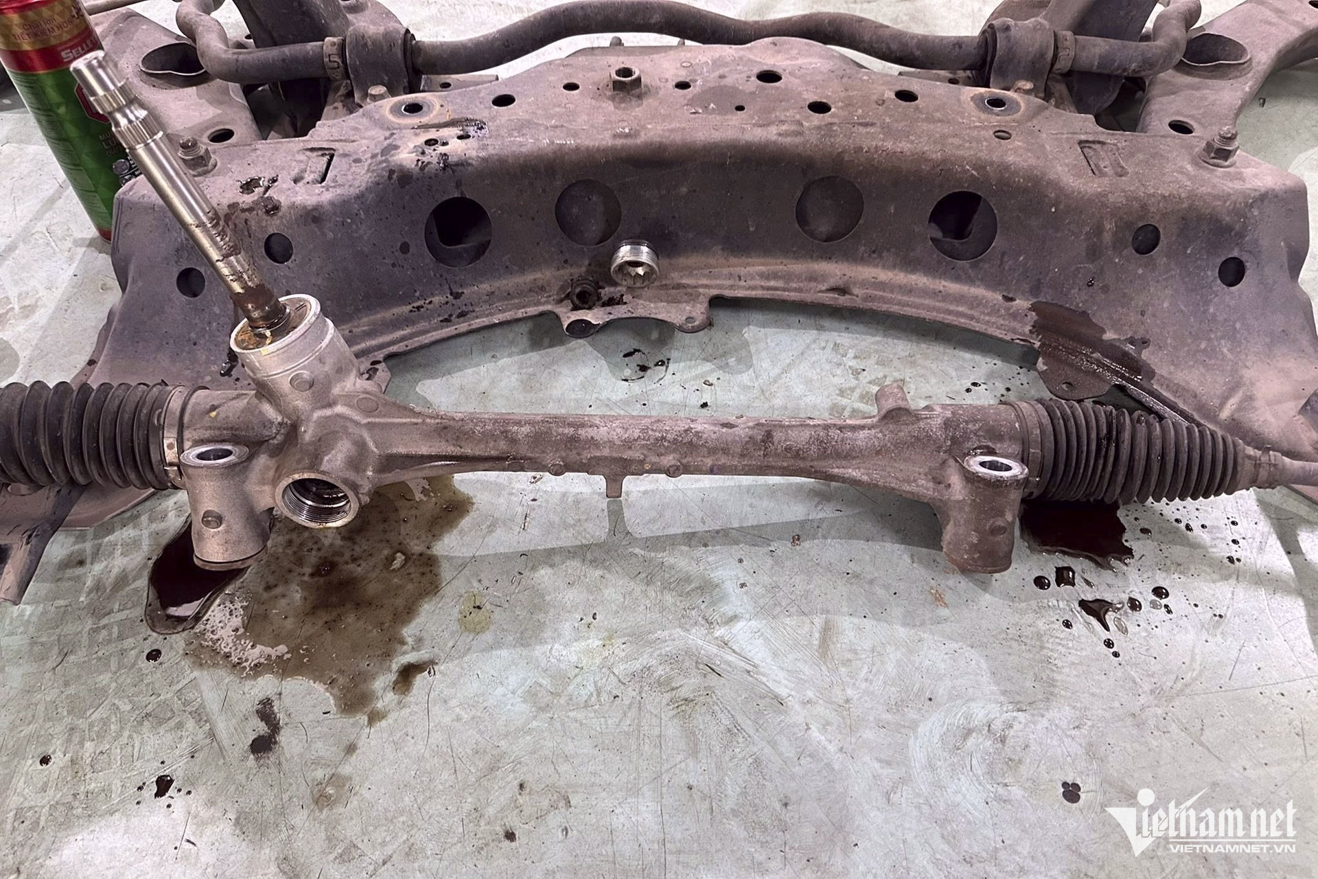 Mỡ bôi trơn, trục vít đều bị hư hại do nước lọt vào thước lái. Ảnh: NVCC