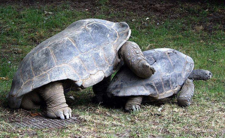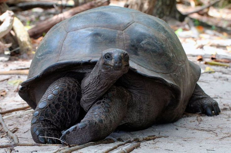 Kích thước khổng lồ đáng kinh ngạc. Rùa khổng lồ Aldabra có thể dài hơn 1,2 mét và nặng tới 250 kg. Con đực thường to hơn đáng kể so với con cái, khiến chúng trở thành một trong những loài rùa lớn nhất thế giới. Ảnh: Pinterest.