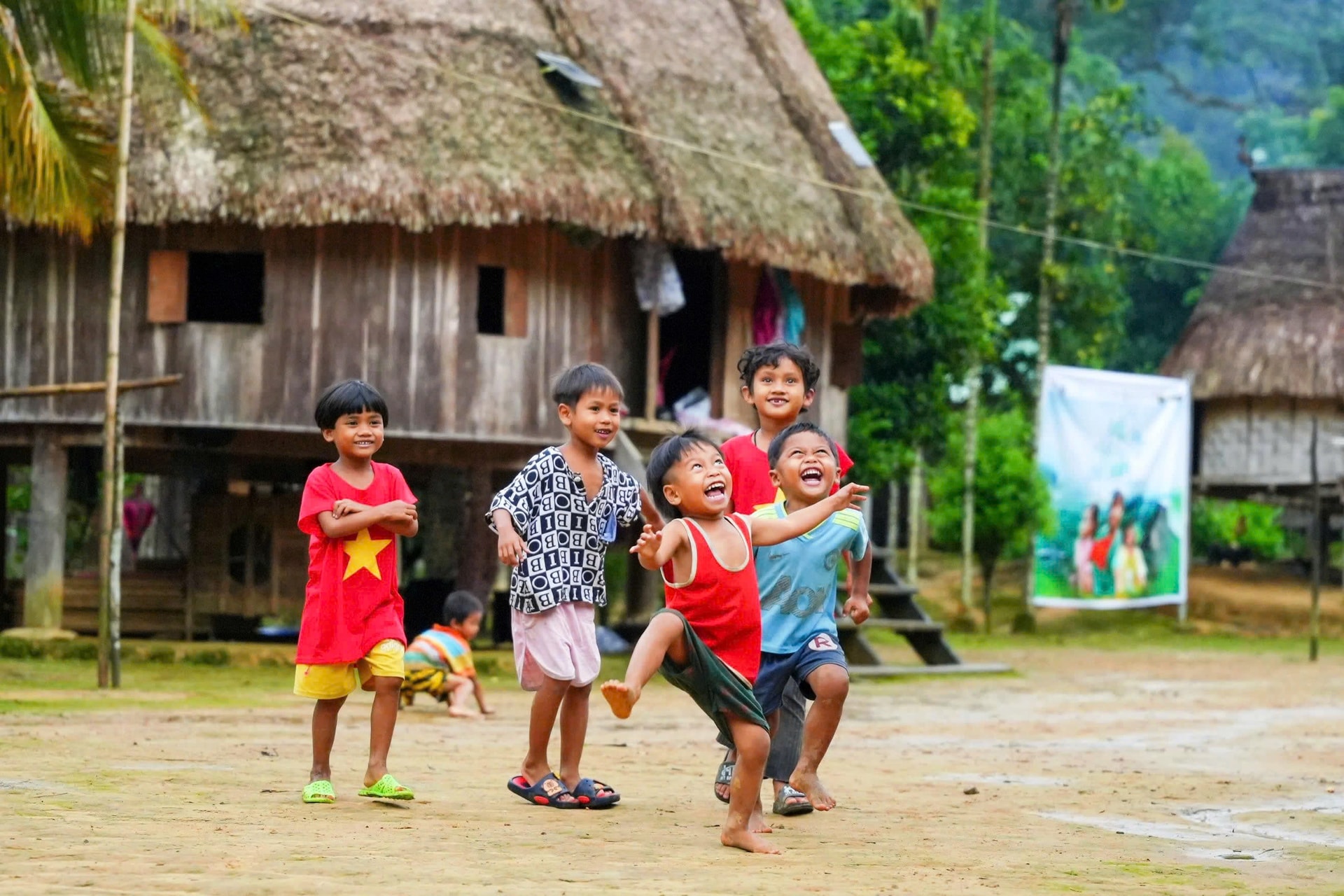 Trẻ con ở làng Aur vui đùa. Ảnh: N.T