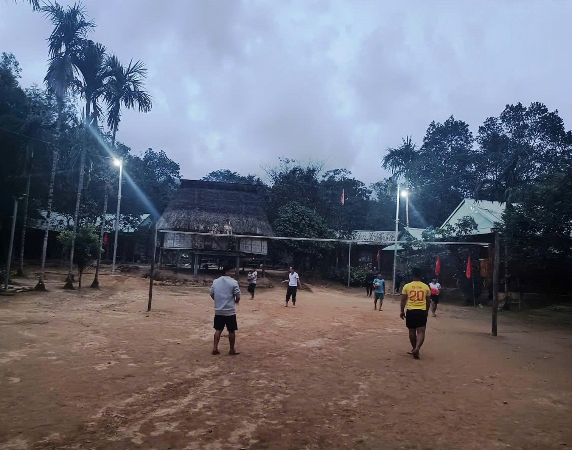 Người dân đánh bóng chuyền dưới ánh điện. Ảnh: N.T