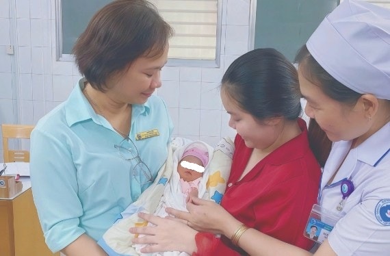 Các bác sĩ Bệnh viện Từ Dũ và gia đình vui mừng chào đón bé gái sau sinh. Ảnh: BVCC