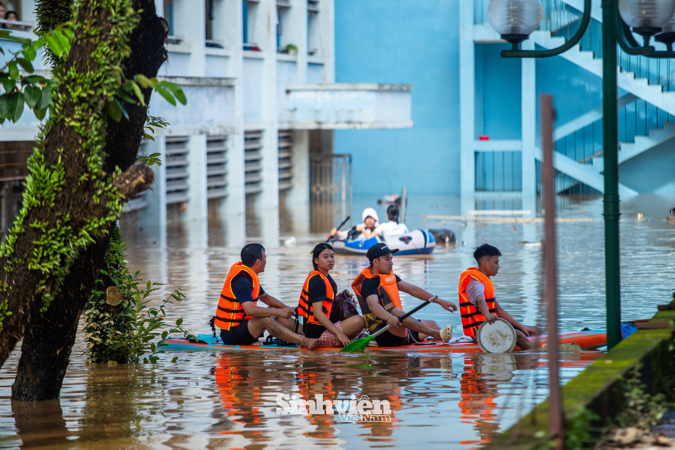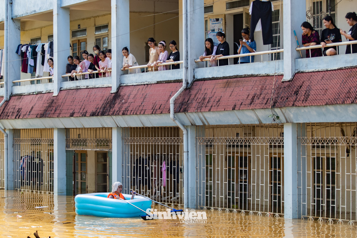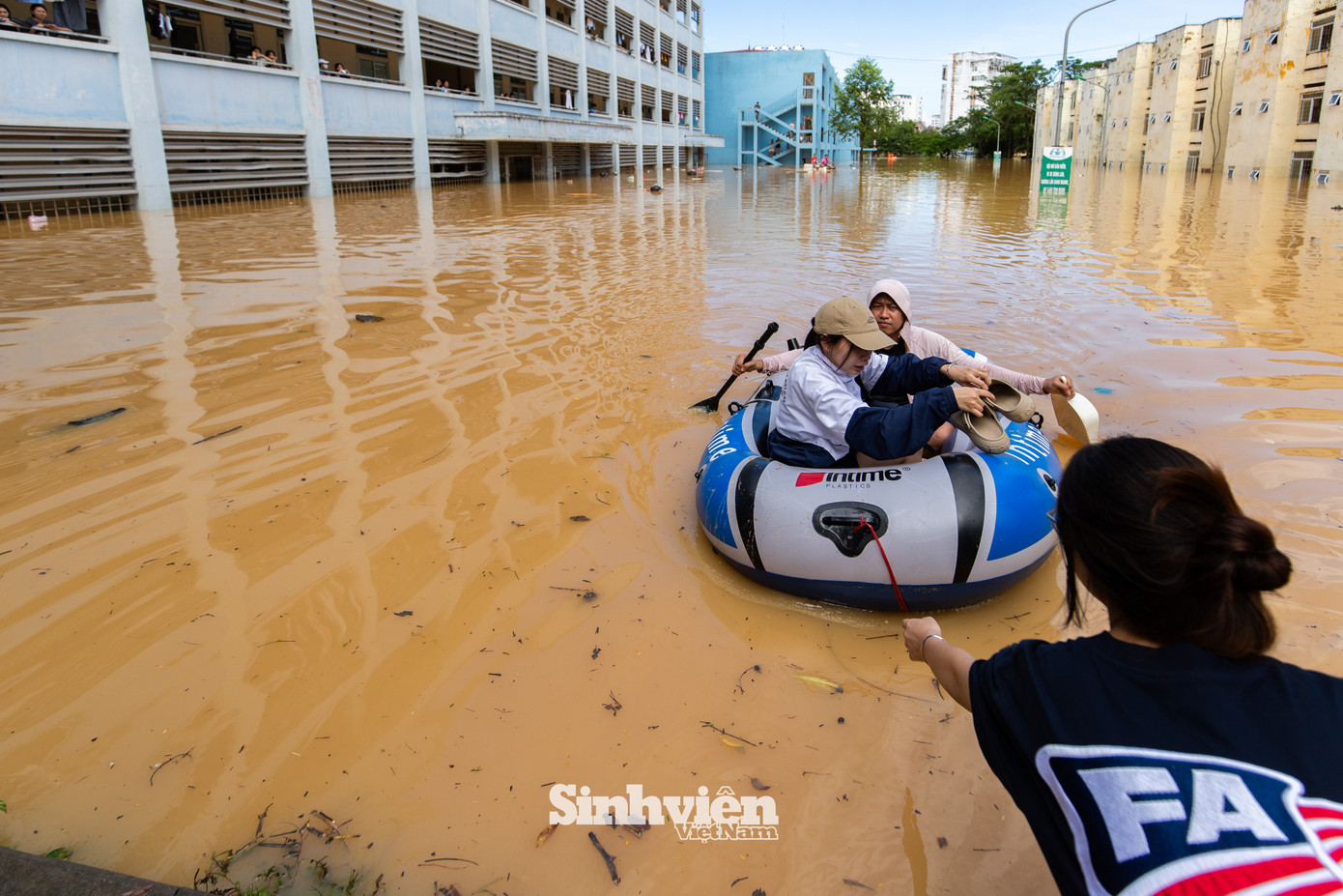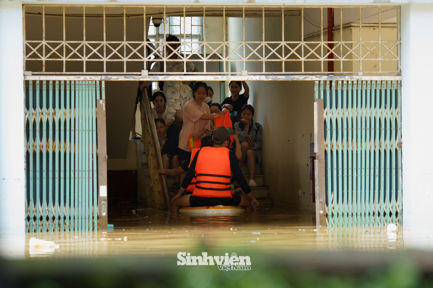 Đối với các tân sinh viên mới nhập học hơn một tháng, đây thực sự là một cú sốc lớn. Tối hôm trước, khi lũ tràn vào, nhiều bạn chỉ kịp kê vội đồ đạc lên cao rồi lội nước qua nhà ăn KTX. Nhưng chỉ một lúc sau quay về, nước đã ngập quá sâu khiến các bạn bất lực, đành ngủ lại nhà ăn và chờ cứu hộ.