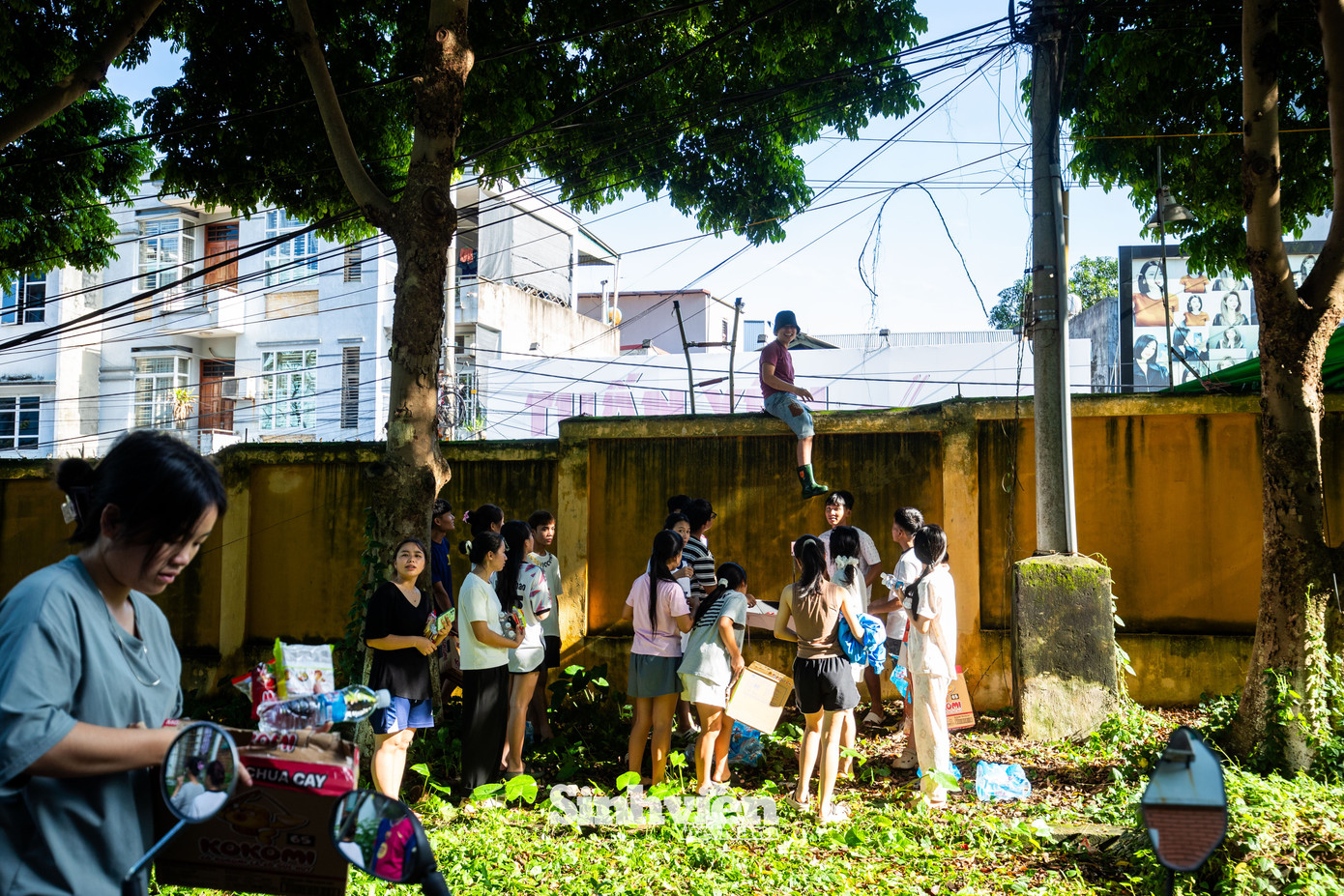 Sinh viên nhận đồ cứu trợ từ người dân.
