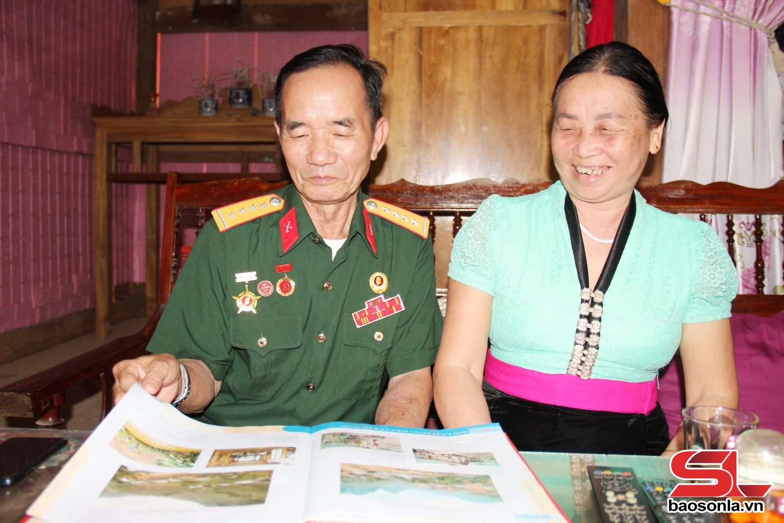 Cựu chiến binh Lò Hồng Sơn, xã Quỳnh Nhai cùng vợ ngắm lại những bức ảnh kỷ niệm.
