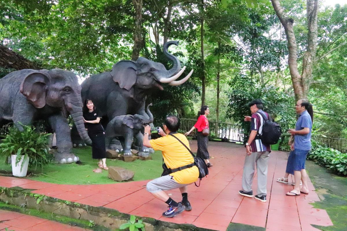 Du khách chụp ảnh voi giả ở Buôn Đôn
