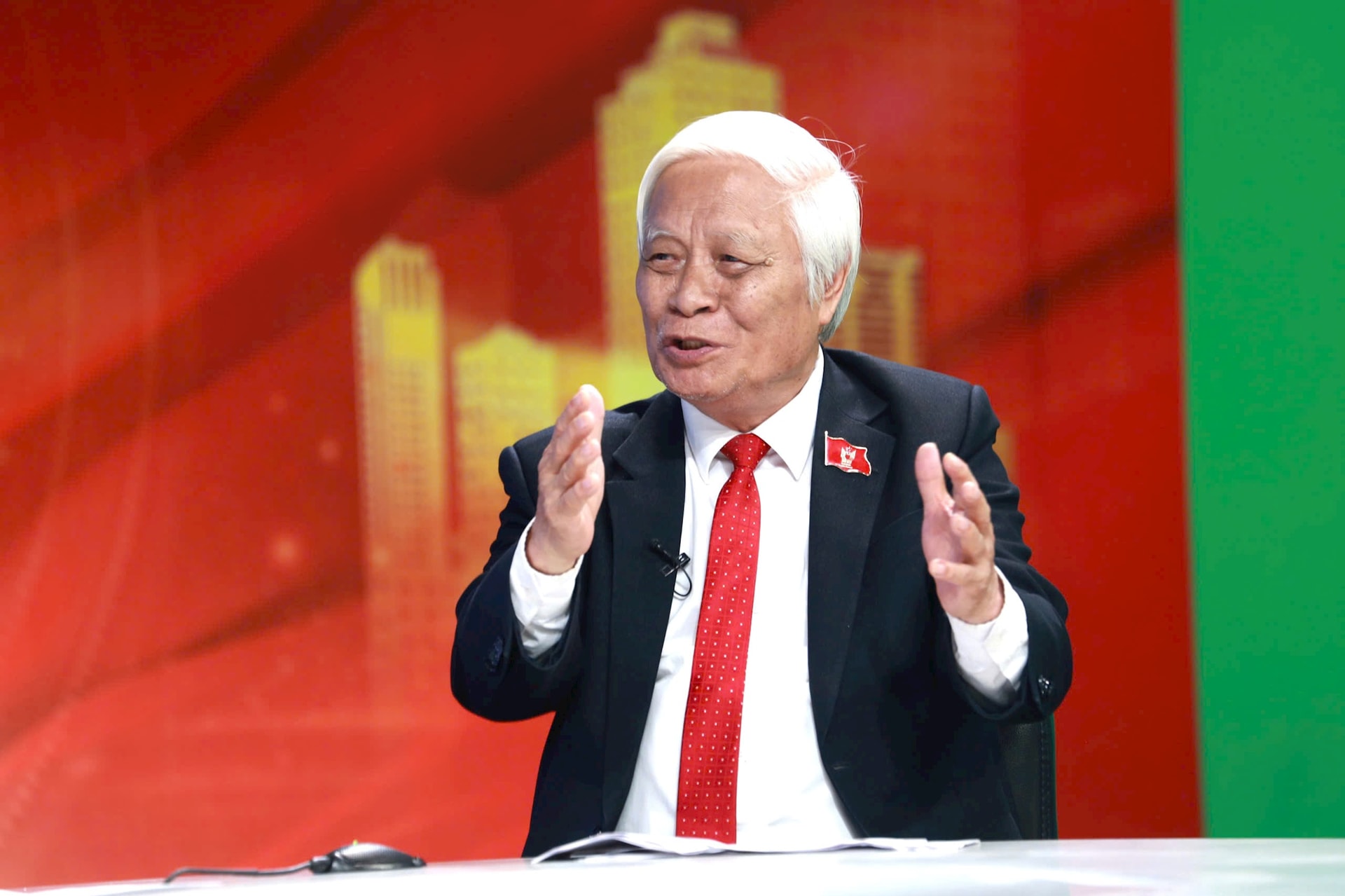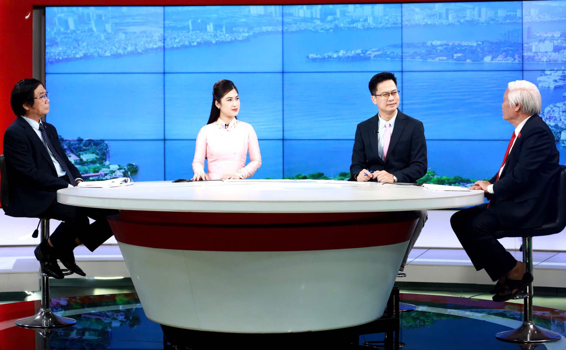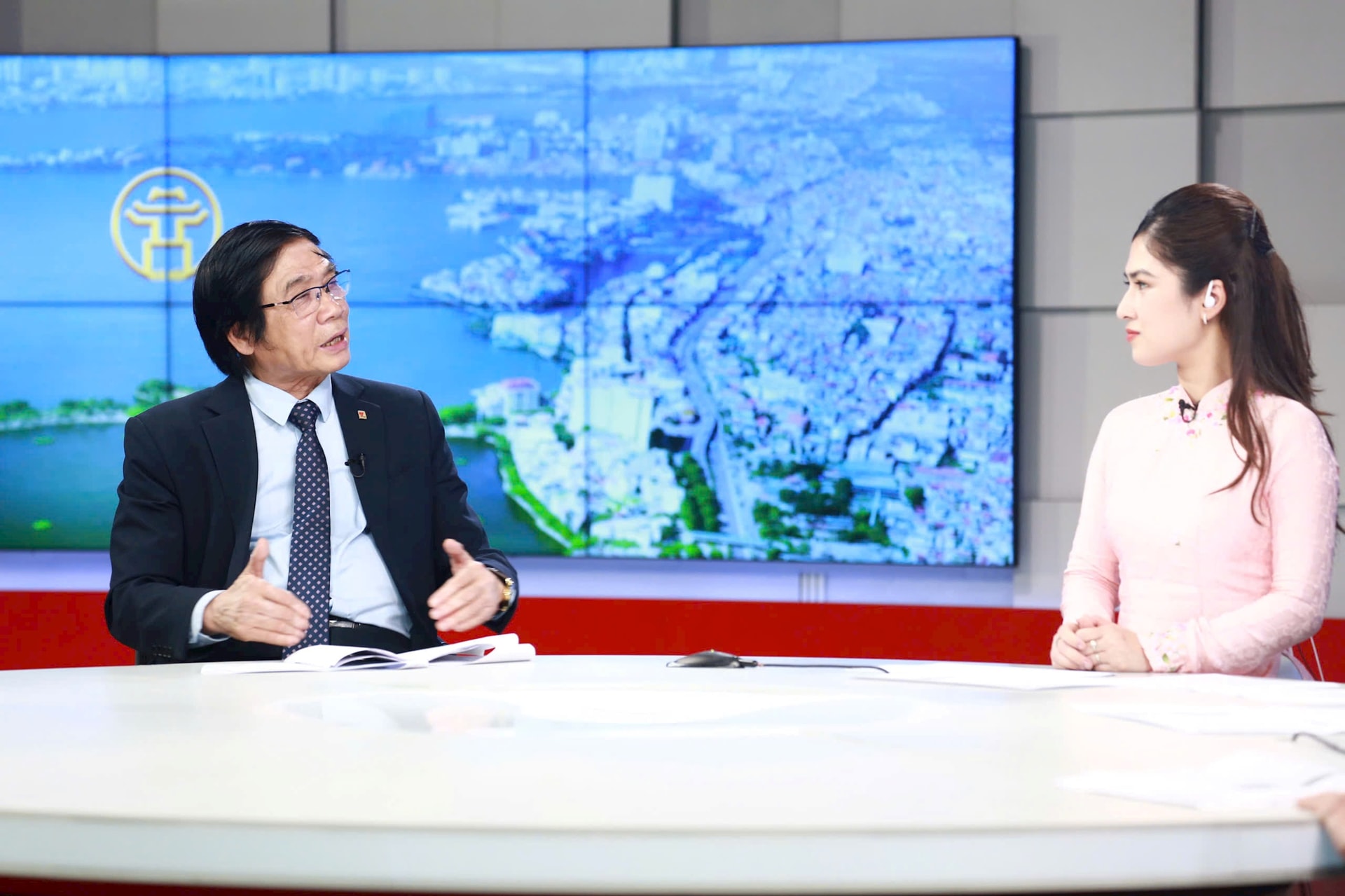 Kiến trúc sư Trần Ngọc Chính - nguyên thứ trưởng Bộ Xây dựng, Chủ tịch Hội quy hoạch phát triển đô thị Việt Nam và Tiến sĩ Nguyễn Viết Chức - nguyên Giám đốc Sở Văn hóa và Thể thao Hà Nội, Viện trưởng Viện nghiên cứu văn hóa Thăng Long chia sẻ tại chương trình thời sự đặc biệt do Cơ quan Báo và Phát thanh, truyền hình Hà Nội thực hiện tối 19-3-2026. Ảnh: Phạm Hùng