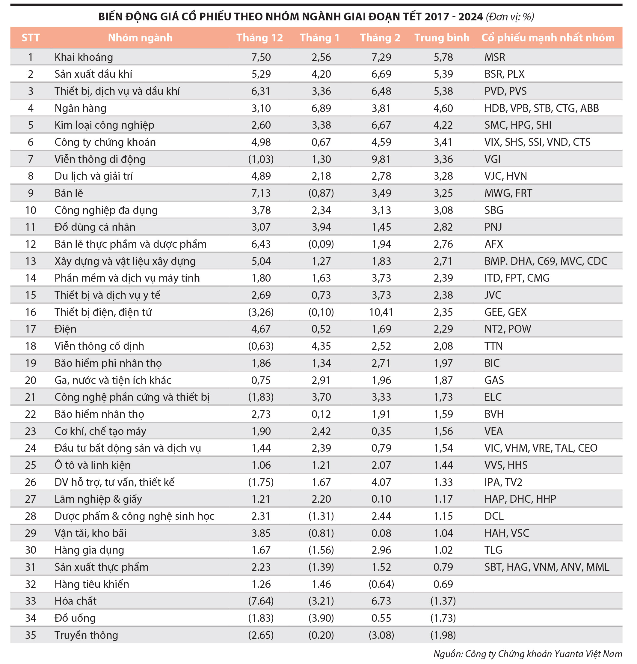Diễn biến các nhóm ngành thời điểm Tết Nguyên đán