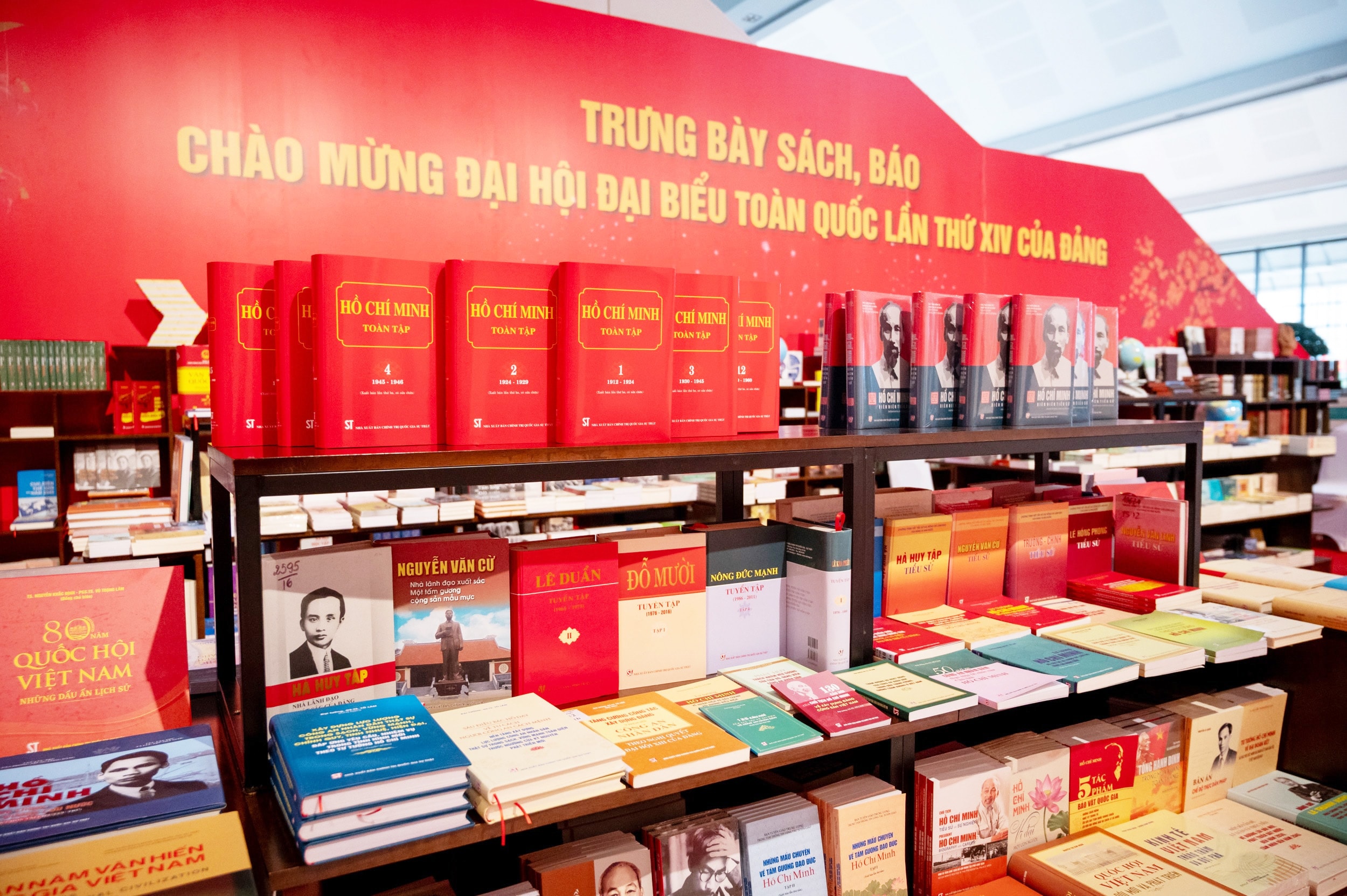 Các ấn phẩm sách, báo trưng bày chào mừng Đại hội XIV của Đảng. Ảnh: Phạm Thắng