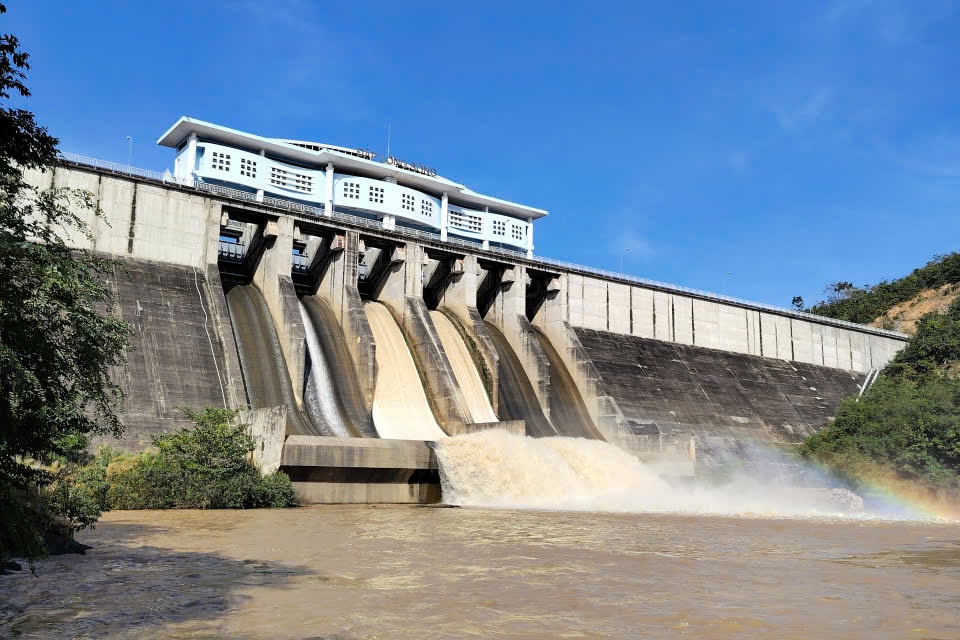 Hồ Lòng Sông đang được điều tiết nước qua tràn