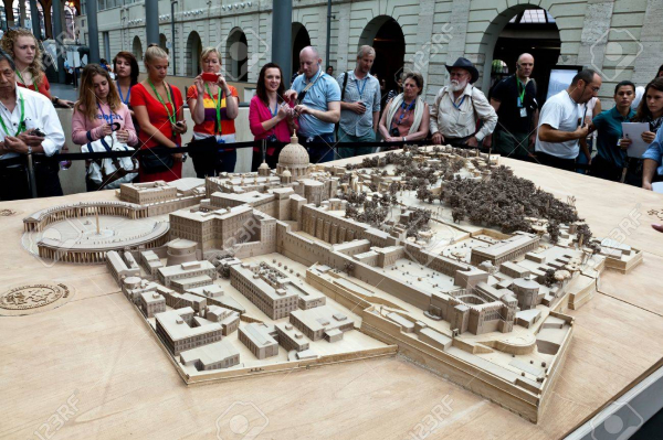 Khách du lịch tại Bảo tàng Vatican đang xem bản đồ 3D của thành phố Vatican.
