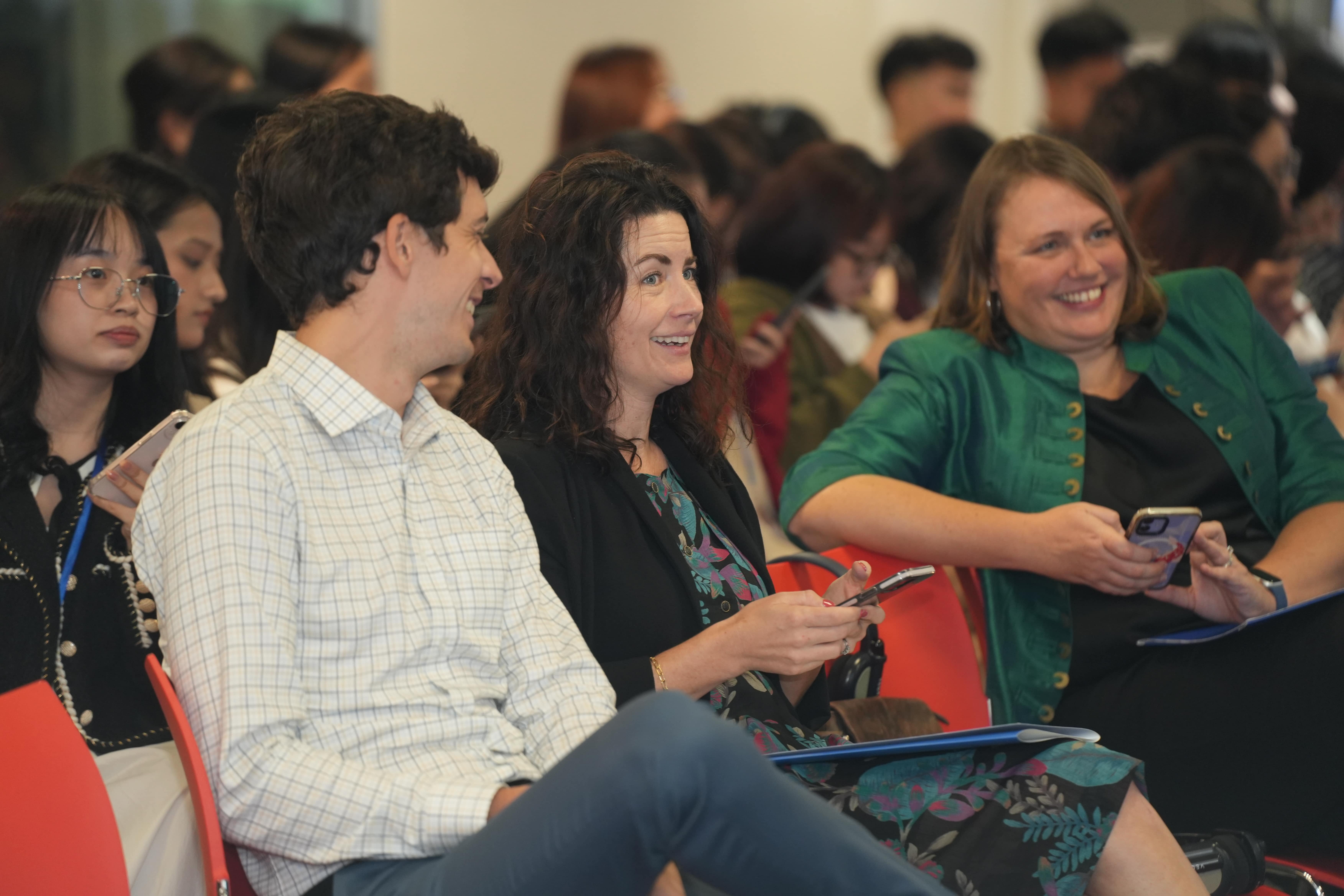 Chương trình thu hút gần 300 đại biểu là sinh viên, chuyên gia công nghệ và thành viên Mạng lưới Thanh niên IOM, tham gia trực tiếp và trực tuyến. Các học viên được tìm hiểu mối liên hệ giữa di cư an toàn, tội phạm mạng và vai trò trung tâm của giới trẻ trong việc lan tỏa nhận thức về vấn nạn này.