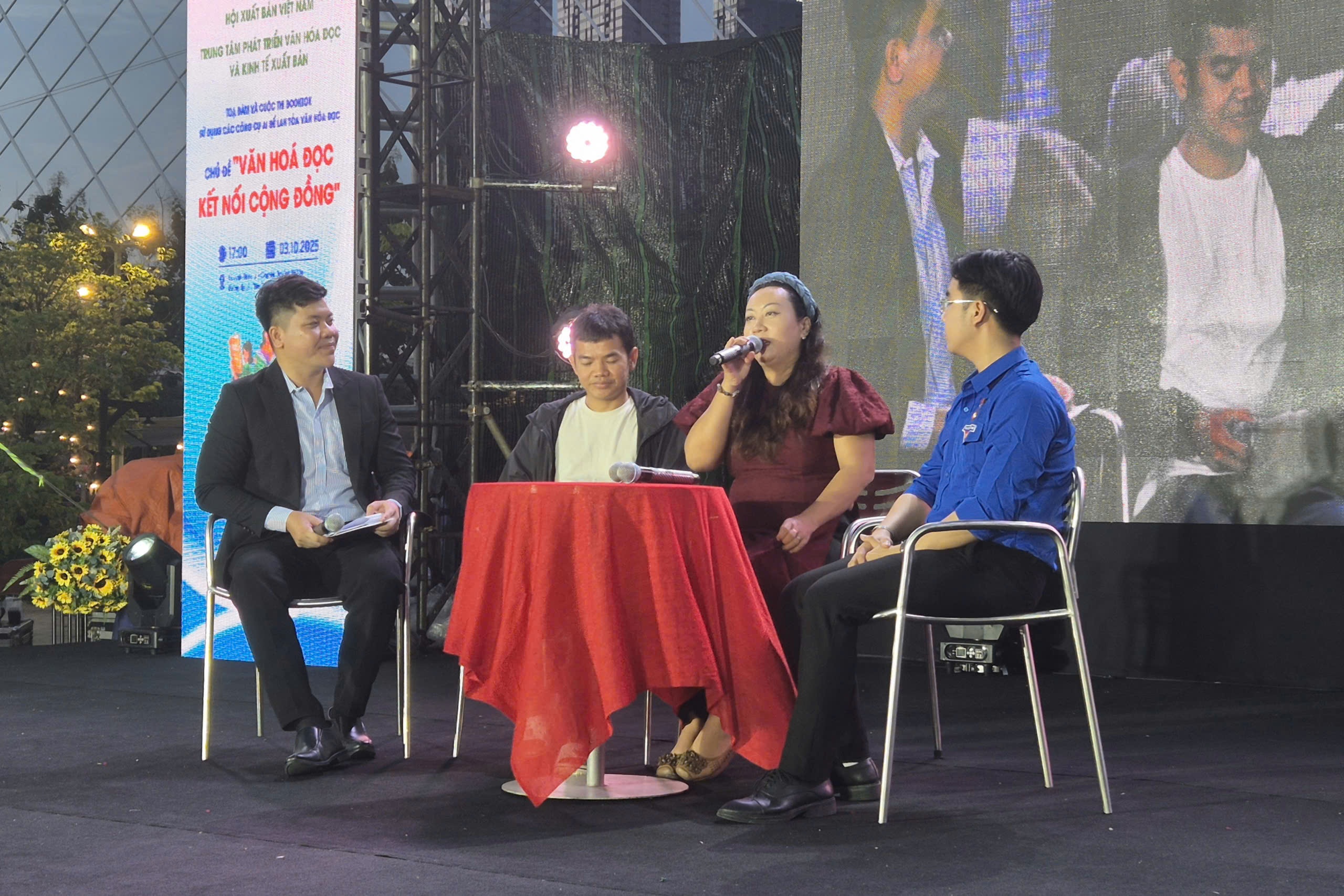 Nhà báo Dương Thảo Quỳnh Như (thứ hai, bên phải) cho rằng đọc sách giúp người trẻ chủ động tiếp cận tri thức thay vì tiêu thụ nội dung một cách thụ động trên mạng xã hội. Ảnh: Đ.A.