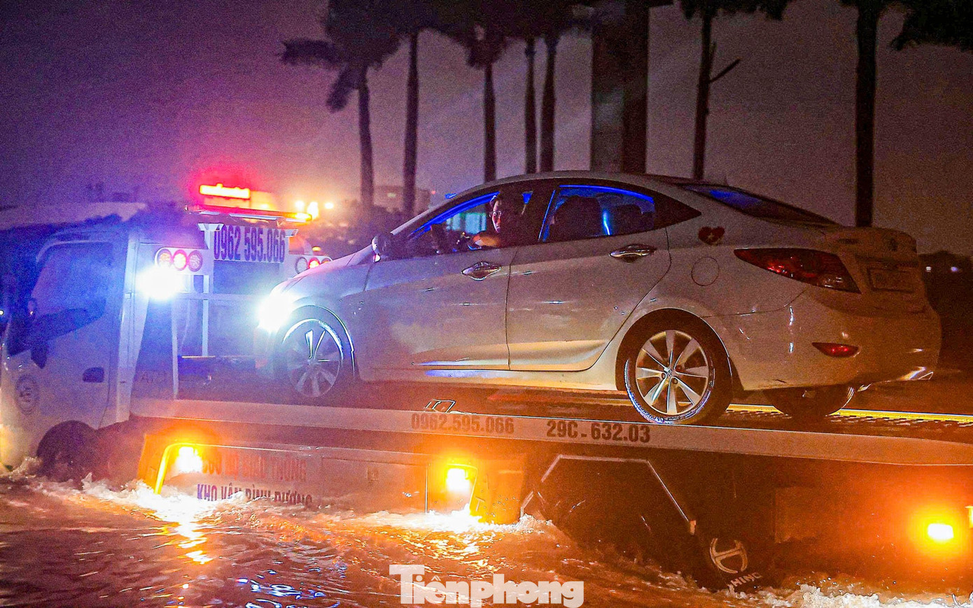 Anh Hoàng Văn Bách cho biết xe đã ngập hơn 5 tiếng nhưng vẫn phải chờ cứu hộ. “Hôm nay chỗ nào cũng ngập nên gọi cứu hộ rất khó, lại khá đắt. Tôi được báo giá 1 triệu đồng để chở về gara”.