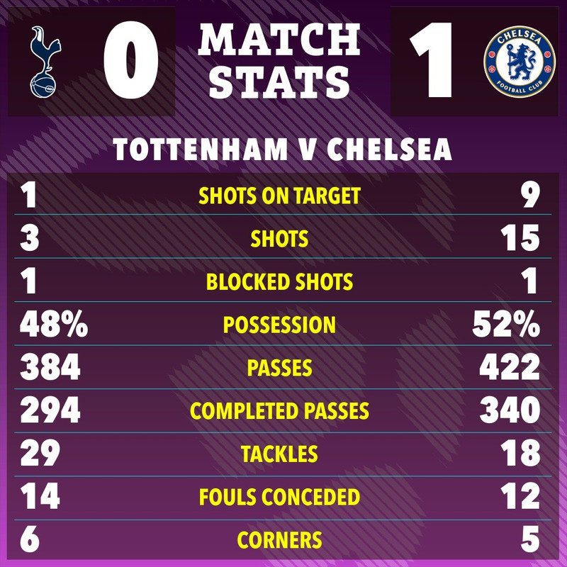Chelsea thi đấu áp đảo dù chỉ thắng 1-0 trước Tottenham.