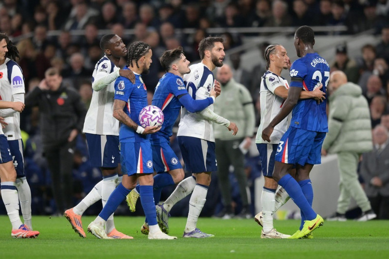 Tiền vệ Rodrigo Bentancur của Tottenham gây tranh cãi khi thoát thẻ đỏ trực tiếp sau pha vào bóng lỗi với Reece James của Chelsea.