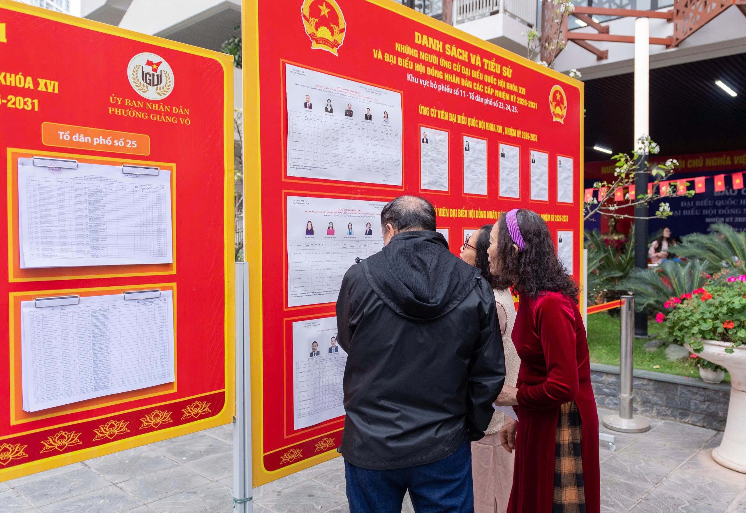 Các cử tri bày tỏ sự quan tâm sâu sắc tới thông tin của các ứng cử viên. Ảnh: Mạnh Hưng