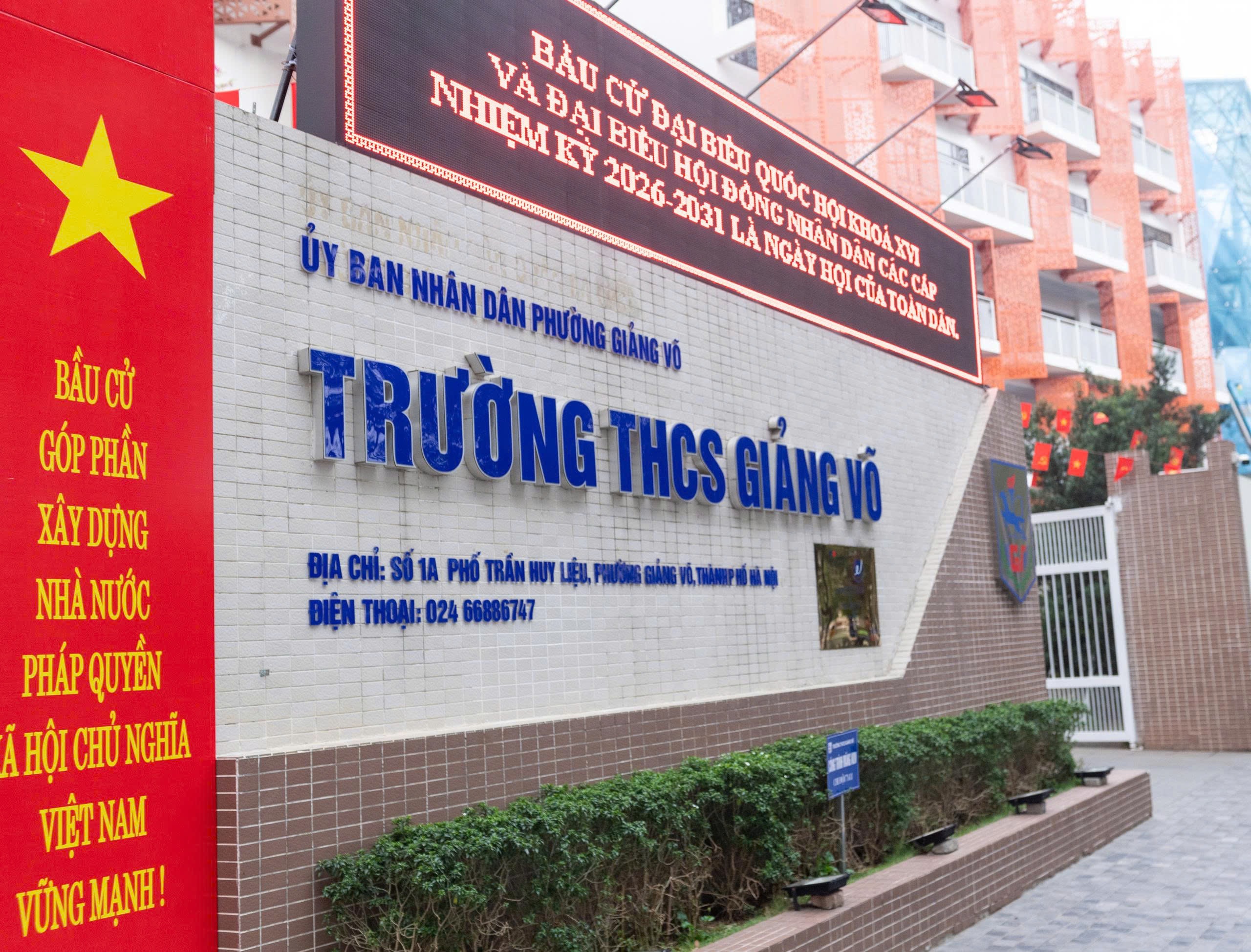 Trường THCS Giảng Võ rộn ràng cờ bay trong ngày hội non sông. Ảnh: Mạnh Hưng
