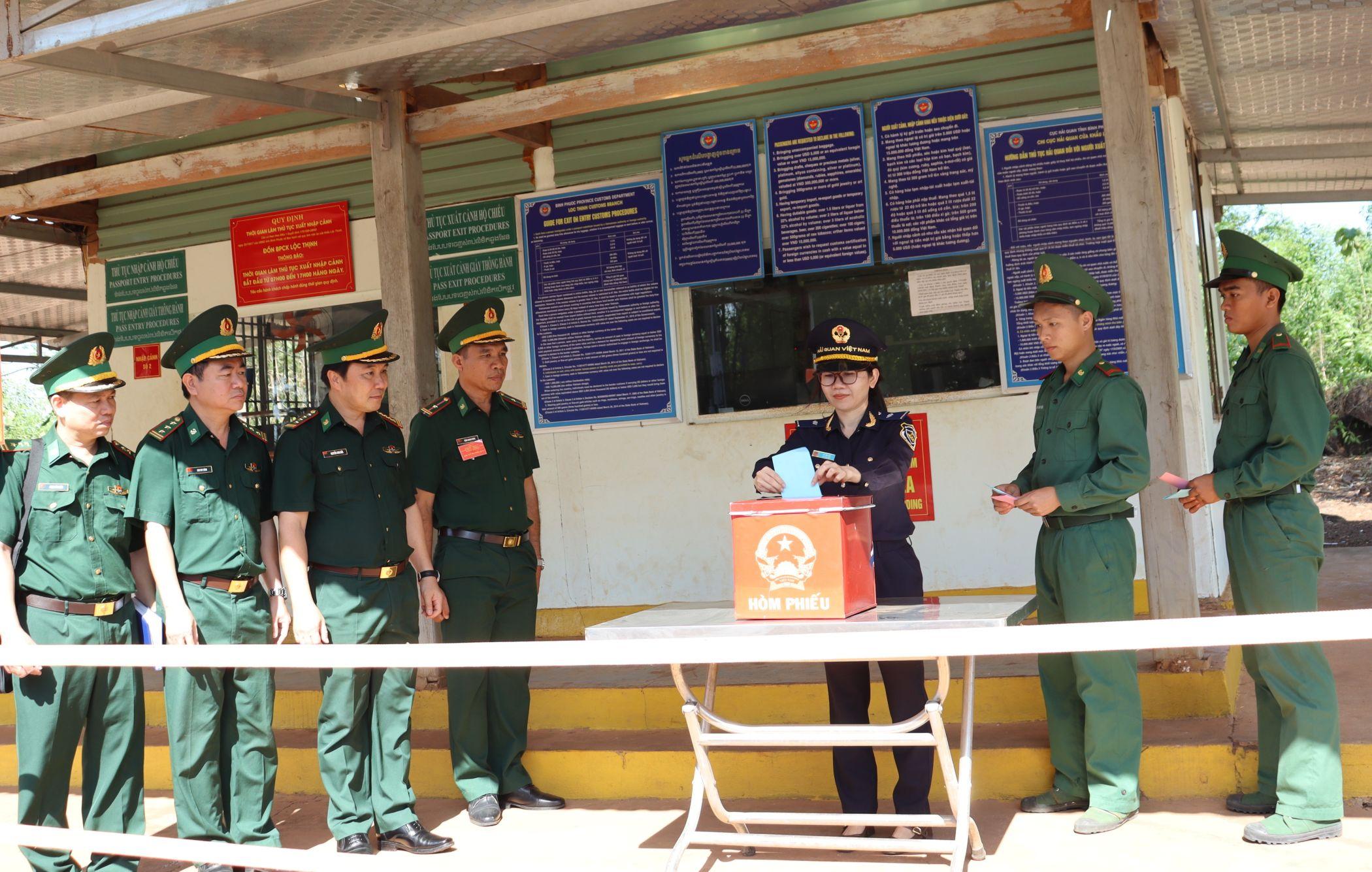 Thiếu tá Nguyễn Quốc Linh, Trạm trưởng Trạm Biên phòng cửa khẩu Lộc Thịnh cho hay, tại khu vực cửa khẩu, các lực lượng làm nhiệm vụ liên tục nên hòm phiếu phụ được bố trí ngay tại đơn vị để cán bộ, chiến sĩ thực hiện quyền bầu cử.