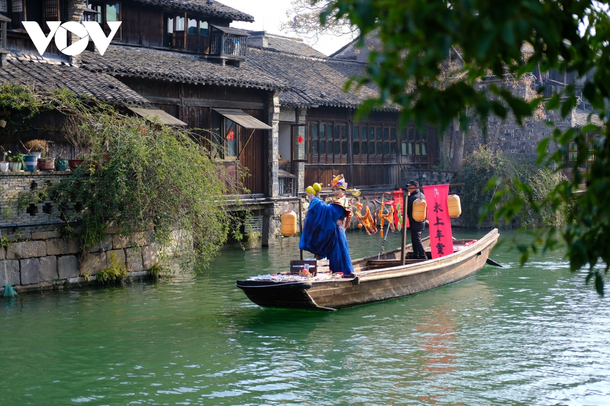 Một trong những trải nghiệm đáng nhớ nhất tại Ô Trấn là ngồi thuyền xuôi theo dòng nước. Khi con thuyền chậm rãi lướt qua những cây cầu đá cổ, du khách có thể quan sát toàn cảnh thị trấn từ một góc nhìn khác.