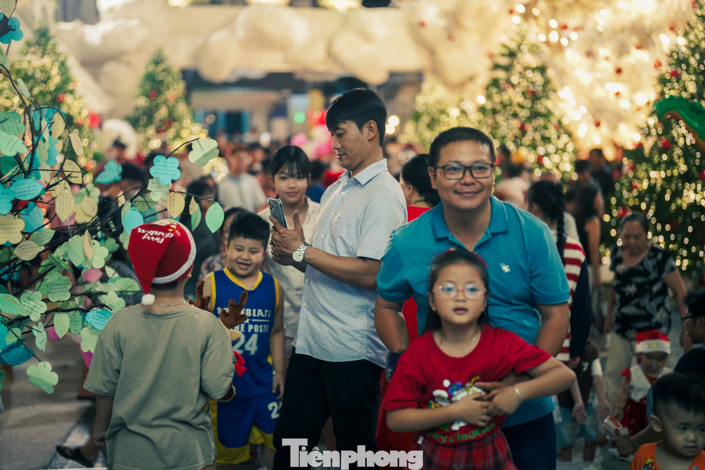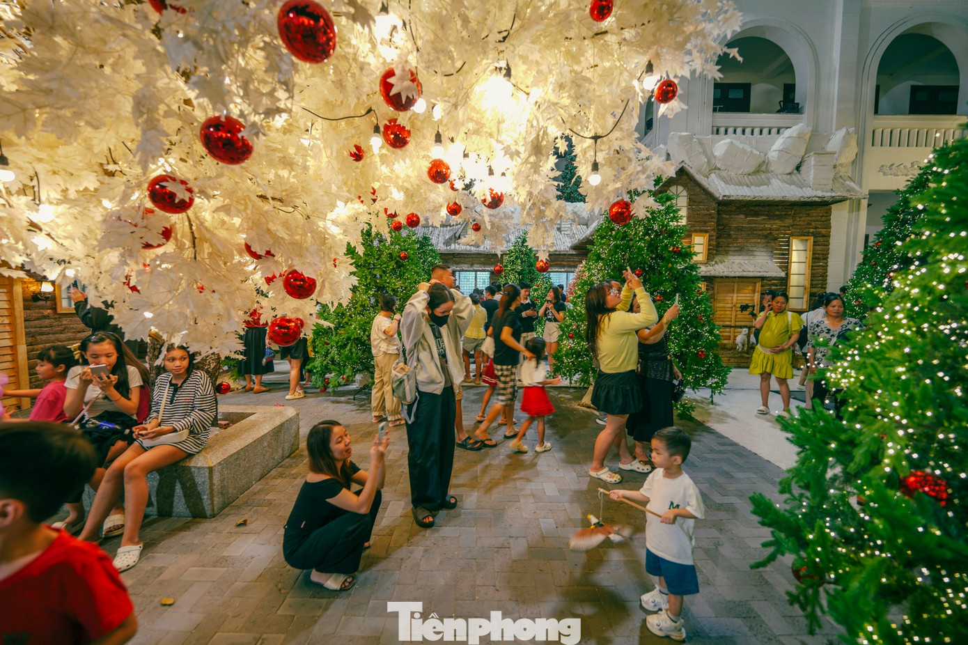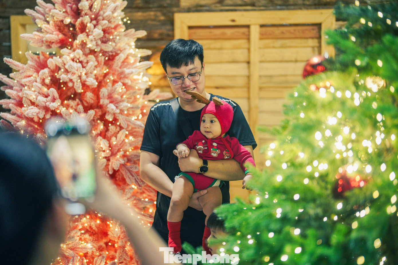 Không gian làng tuyết lung linh không chỉ hút các cặp đôi đến check-in mà còn là nơi nhiều ông bố, bà mẹ đưa con tới dạo chơi, tận hưởng không khí Giáng sinh ấm áp.