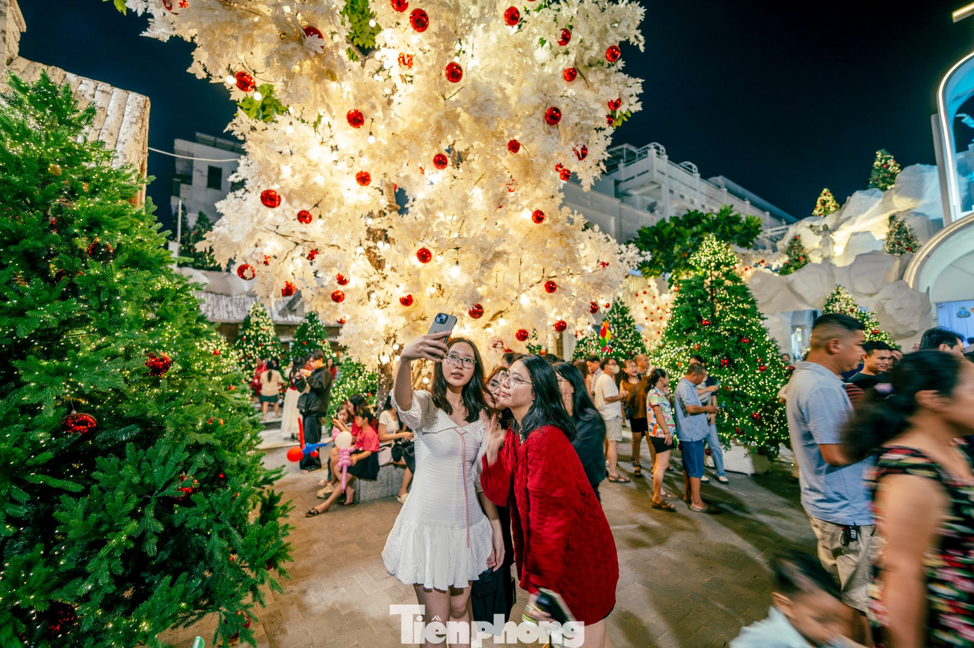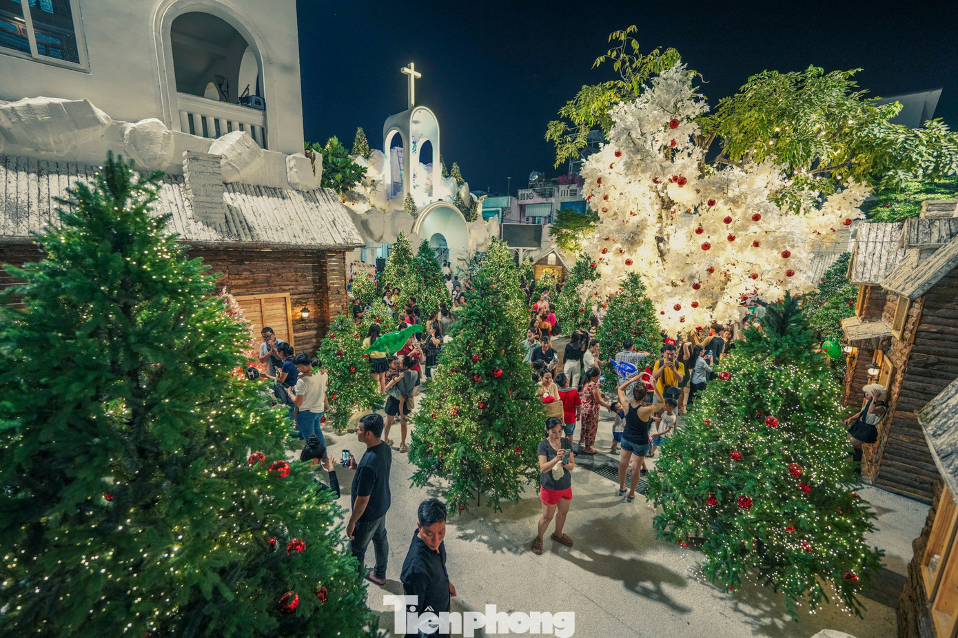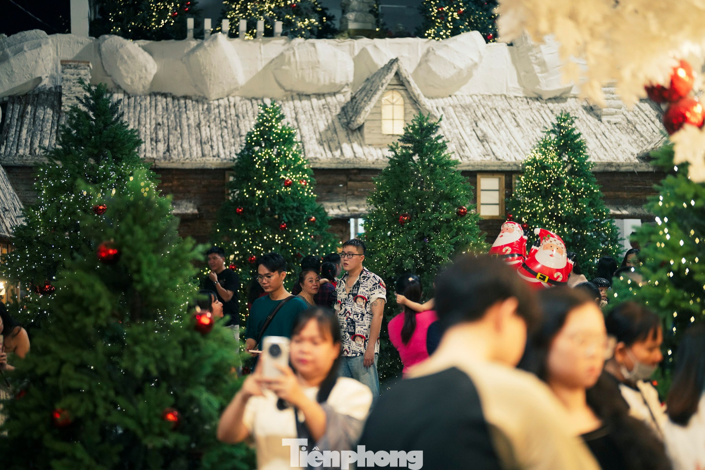 Không gian làng tuyết lung linh không chỉ hút các cặp đôi đến check-in mà còn là nơi nhiều ông bố, bà mẹ đưa con tới dạo chơi, tận hưởng không khí Giáng sinh ấm áp.
