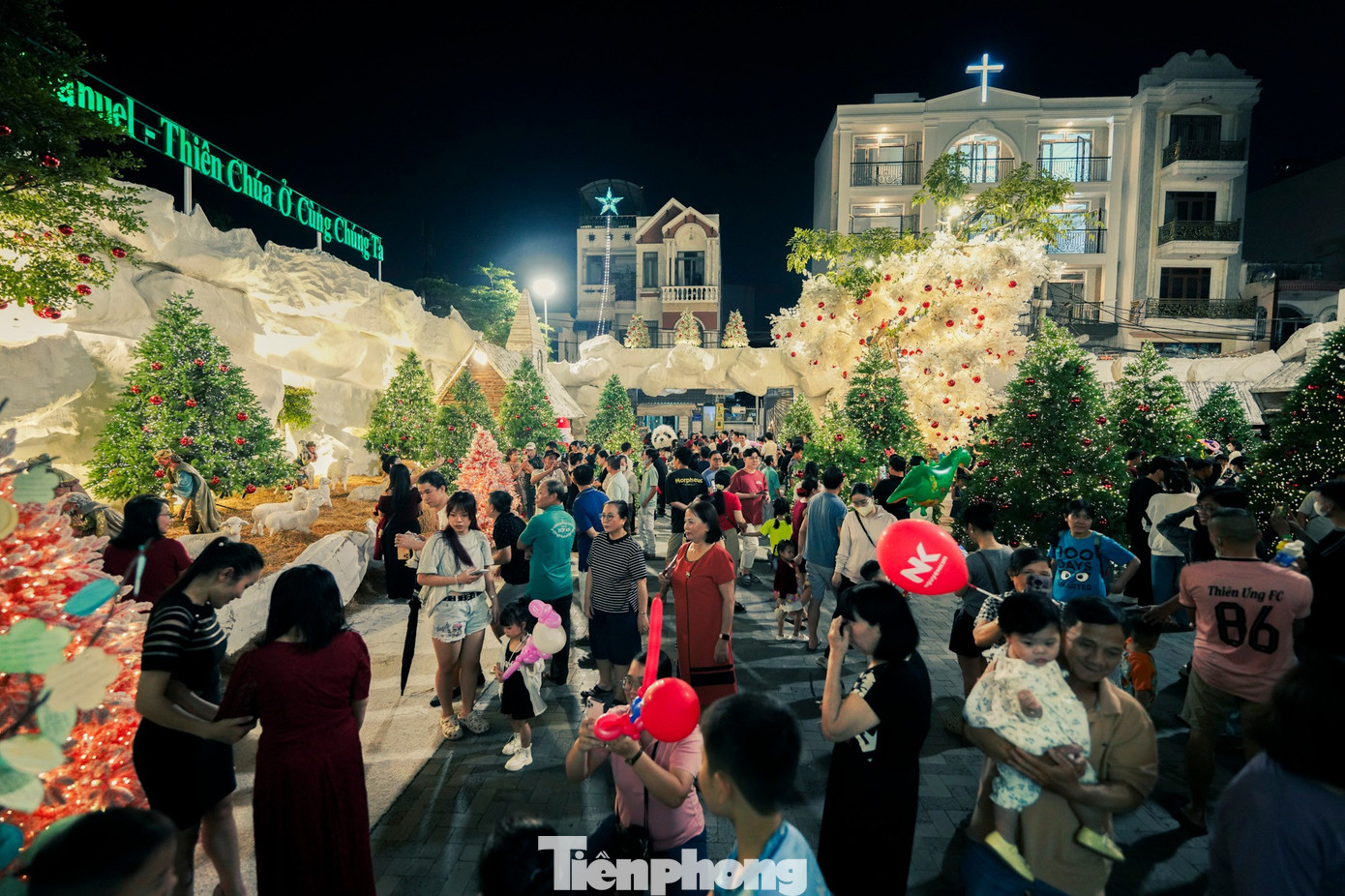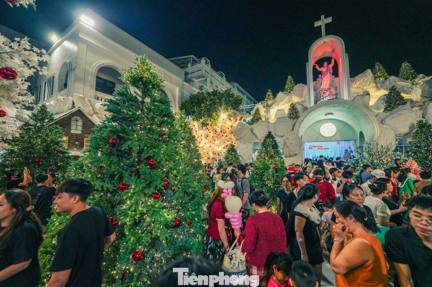 Ban đêm, khi hệ thống đèn được thắp sáng, cả khuôn viên giáo xứ trở nên lung linh, huyền ảo. Ánh đèn vàng hòa cùng sắc xanh của thông, sắc trắng của tuyết nhân tạo khiến nhiều người có cảm giác như đang dạo bước trong một khu rừng.