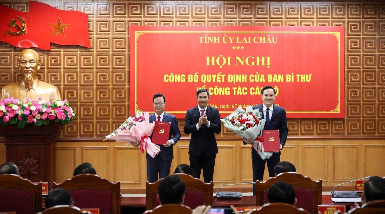 Trao Quyết định và phát biểu giao nhiệm vụ, đồng chí Nguyễn Thành Tâm – Ủy viên Ban Chấp hành Trung ương Đảng, Phó Trưởng Ban Tổ chức Trung ương chúc mừng hai đồng chí Nguyễn Tuấn Anh và Nguyễn Ngọc Vinh được Ban Bí thư chỉ định, điều động và chuẩn y giữ chức Phó Bí thư Tỉnh ủy Lai Châu nhiệm kỳ 2025–2030.