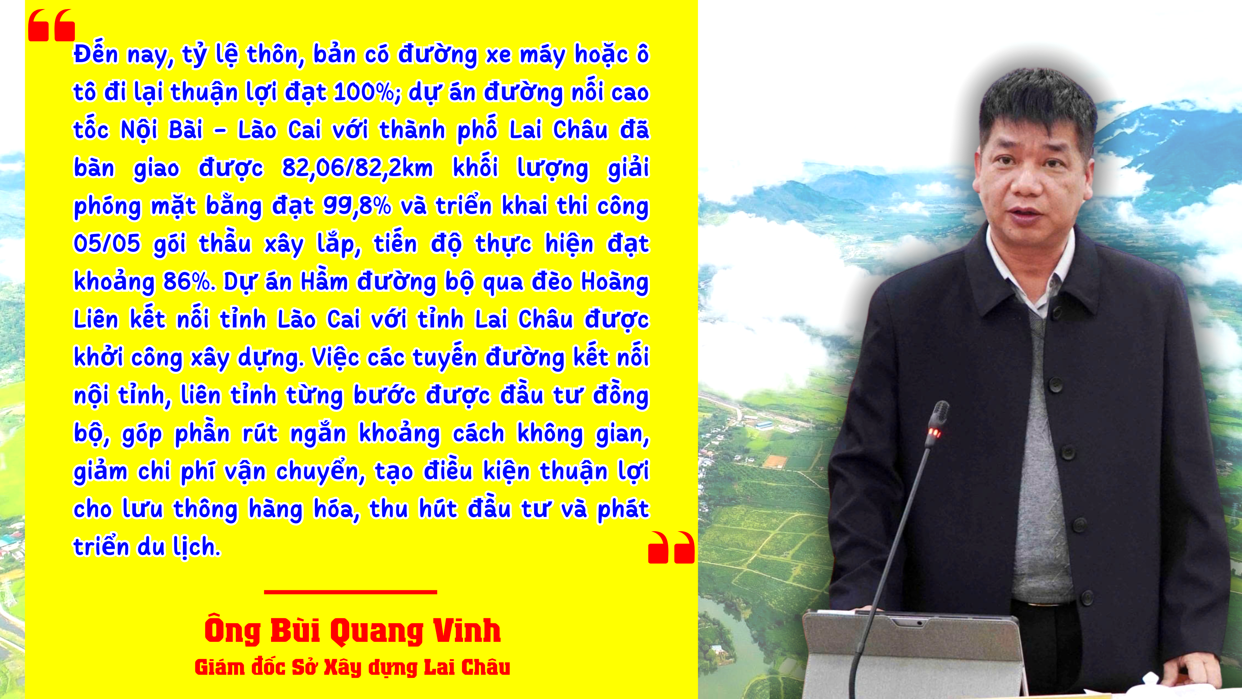 Hạ tầng giao thông tiếp tục được xác định là khâu đột phá chiến lược trong phát triển kinh tế - xã hội của Lai Châu. Năm 2025, tỉnh tập trung nguồn lực, tháo gỡ khó khăn, đẩy nhanh tiến độ các dự án giao thông trọng điểm, có tính liên kết vùng.