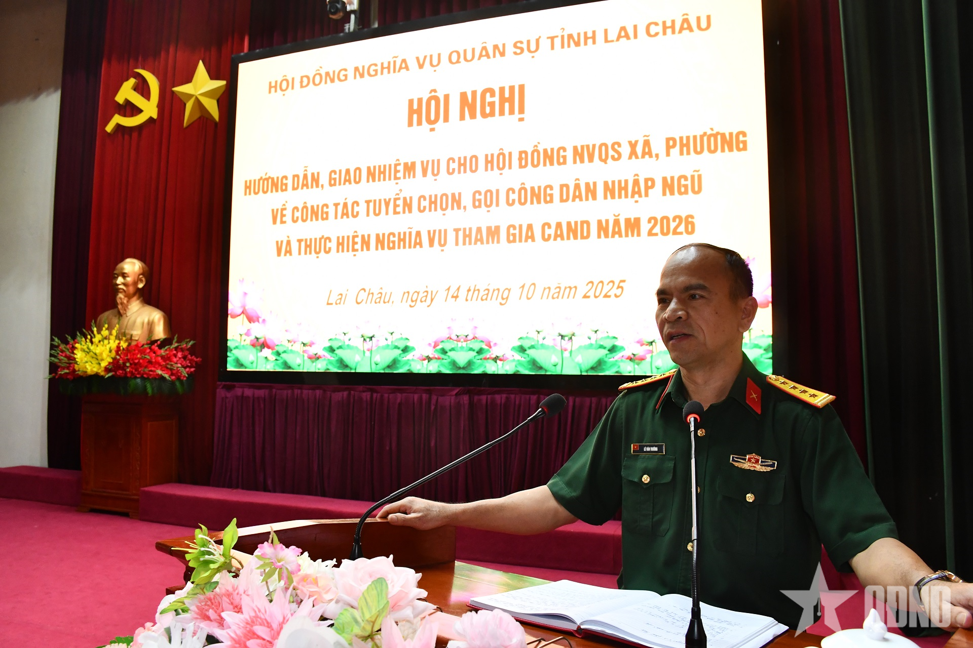 Phát biểu chỉ đạo, Đại tá Hoàng Văn Kỳ nhấn mạnh, hội nghị là dịp để cán bộ các cấp quán triệt những điểm mới của các văn bản về thực hiện pháp luật NVQS; trao đổi kinh nghiệm, tháo gỡ khó khăn, tìm ra cách làm hay, từ đó thống nhất, nâng cao chất lượng công tác tuyển chọn và gọi công dân nhập ngũ năm 2026 và những năm tiếp theo.