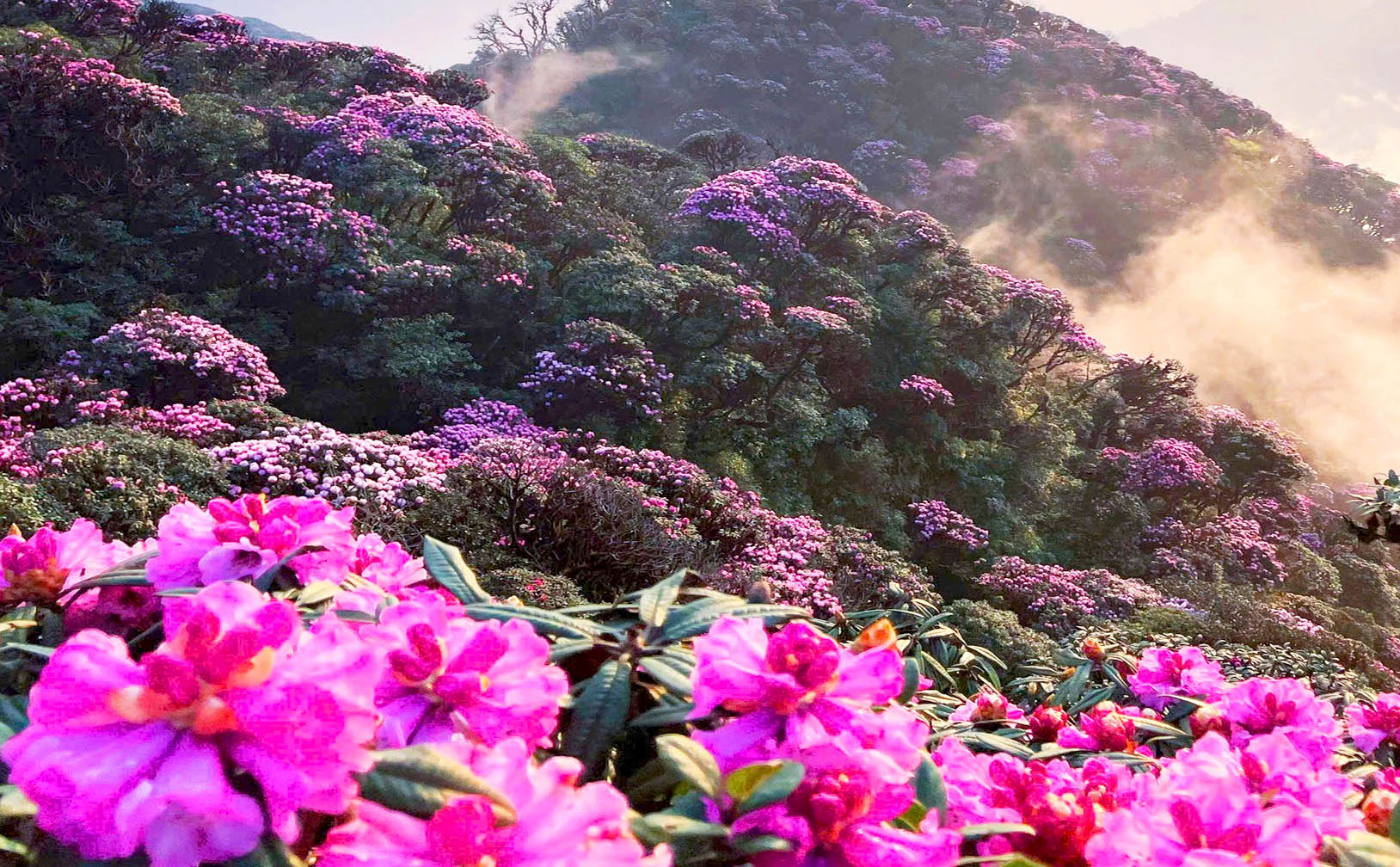 Đặc biệt, đến Lai Châu không thể không nhắc đến “nữ hoàng” của các loài hoa - đỗ quyên. Tháng 3, trên những vạt rừng trải dài, bạt ngàn hoa đỗ quyên bung nở thành những thảm sắc màu nơi mây ngàn gió núi. Giữa núi rừng hùng vĩ, bao la, những cụm đỗ quyên rực rỡ như đốm lửa ấm, thắp lên sức sống mãnh liệt của thiên nhiên. Bởi vậy, những cuộc hành trình chinh phục mùa đỗ quyên, dù phải vượt qua những cung đường dốc ngược, trơn trượt, vẫn ngày càng thu hút đông đảo du khách thập phương tìm về với những đỉnh núi cao của Lai Châu để thưởng thức vẻ đẹp đỗ quyên.