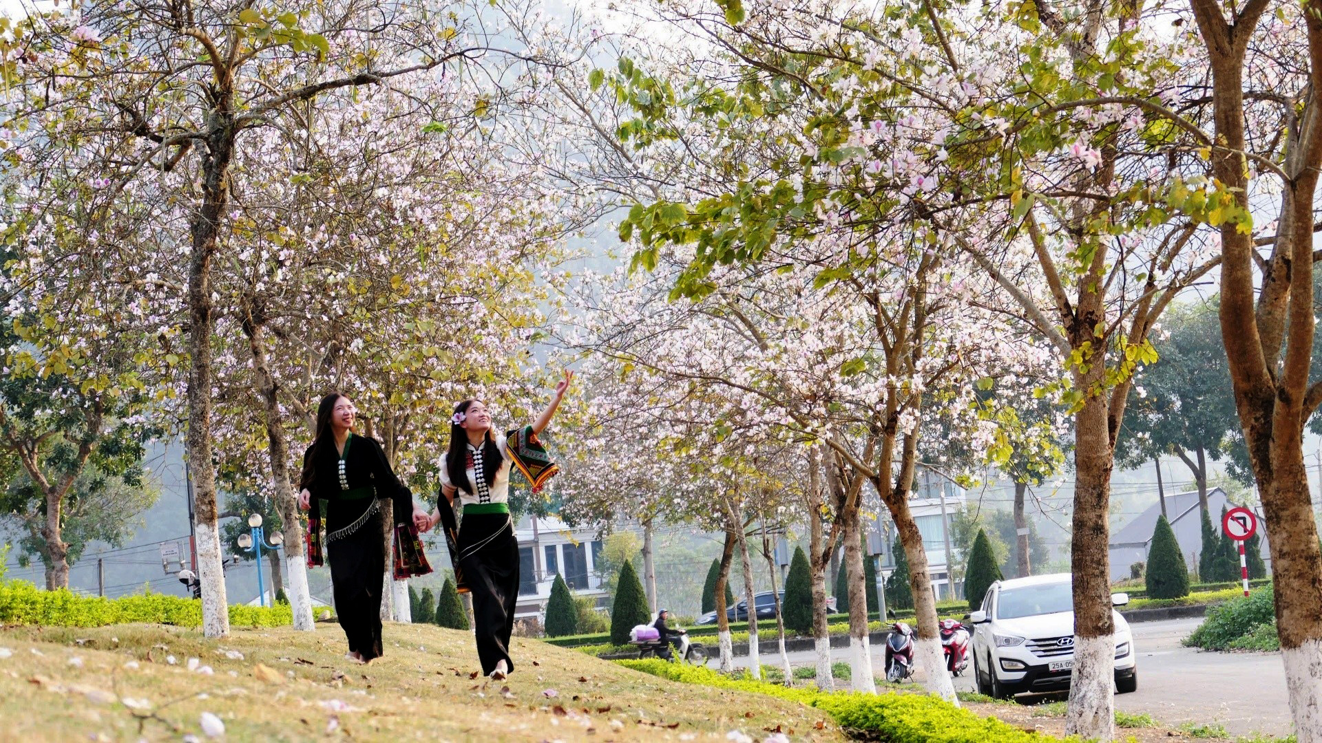 Giữa mùa ban nở, khi núi rừng khoác lên mình tấm áo trắng tinh khôi cũng là lúc những người phụ nữ vùng cao xúng xính váy áo xuống phố, xuống bản. Những bộ trang phục truyền thống rực rỡ sắc màu được thêu dệt tỉ mỉ, nổi bật giữa nền hoa ban trắng ngần, tạo nên một bức tranh vừa hài hòa, vừa cuốn hút. Họ sánh bước bên nhau, lưu giữ ký ức về một mùa ban rực nở, về tuổi trẻ tràn đầy thanh xuân và khát vọng, tiếng nói rộn ràng hòa cùng gió xuân.