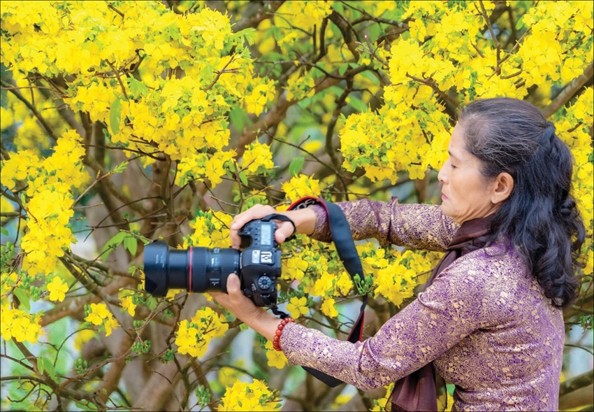 Tìm khoảnh khắc đẹp bên cây mai vàng ở Tứ Chánh - Phong Sơn. Ảnh: Bảo Minh