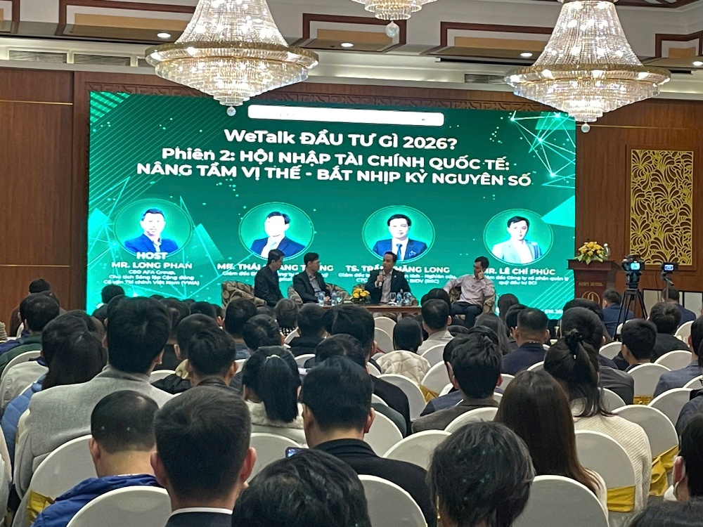 Chuyên gia chia sẻ tại WeTalk "Đầu tư gì 2026" do Cộng đồng Cố vấn tài chính Việt Nam tổ chức sáng nay (27/12).