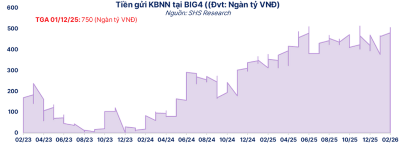 Trong bức tranh đó, các chuyên gia của SHS cho hay, tiền gửi của Kho bạc Nhà nước tại nhóm ngân hàng lớn trở thành một mảnh ghép quan trọng.