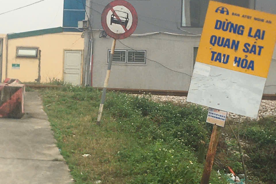 Khu vực đường ray đã bố trí biển cảnh báo "Chú ý tàu hỏa", cột thu hẹp từ trước. Ảnh: VNR.