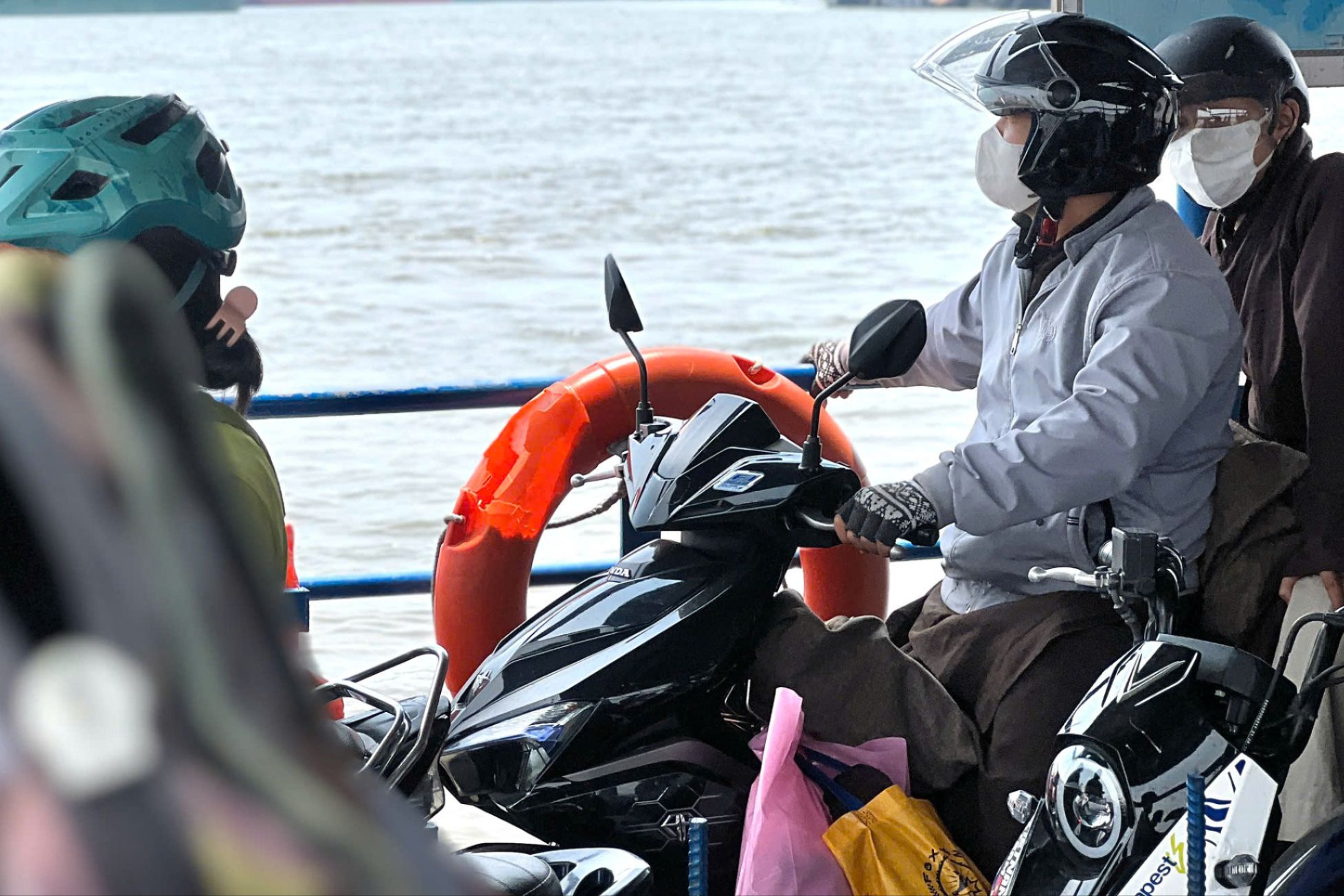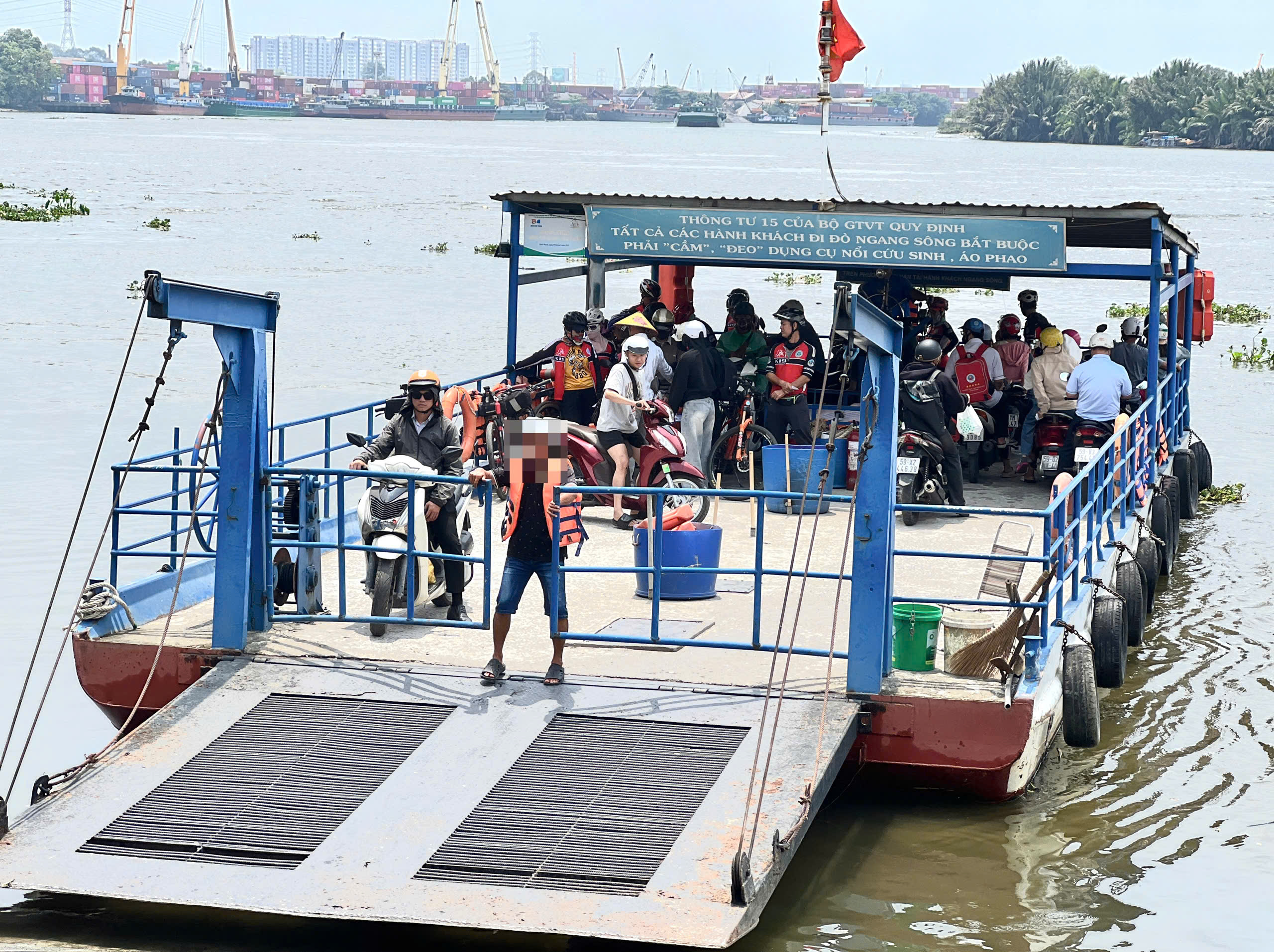 Ngày 21-3, theo ghi nhận của PV Pháp Luật TP.HCM tại bến phà Bình Quới (phường Bình Quới, TP.HCM), tình trạng hành khách và người điều khiển phương tiện không mặc áo phao cứu sinh khi qua sông diễn ra khá phổ biến.