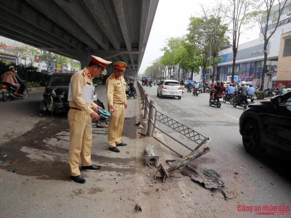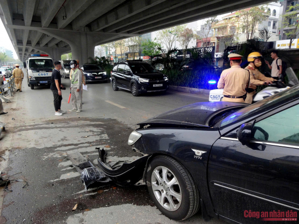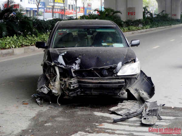Thời điểm trên, xe ô tô BKS: 30B-294.xx đang lưu thông trên đường theo hướng từ cầu Thăng Long về Hoàng Quốc Việt. Khi ô tô di chuyển đến đối diện số 26 đường Phạm Văn Đồng thì bất ngờ đâm vào dải phân cách chia làn. Sau va chạm ôtô quay ngang đường, phần đầu xe vỡ nát.