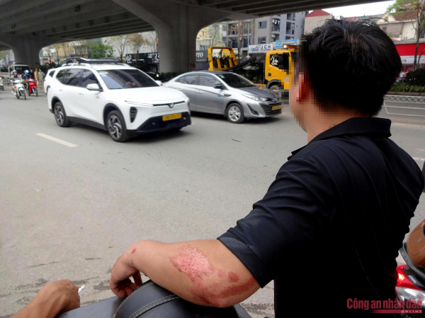 Anh Phạm Văn Hưng cho biết: "Tôi đang chạy xe máy thì bất ngờ bị một vật gì đó tác động vào xe dẫn đến ngã ra đường. Người dân xung quanh đã nhanh chóng chạy ra đỡ tôi dậy, tay chân tôi bị trầy xước. Lúc đứng dậy thì đã không thấy tài xế ôtô ở đâu cả".