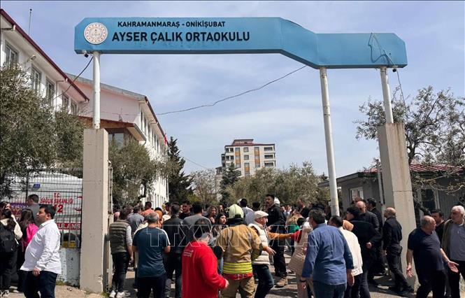 Phụ huynh học sinh tập trung tại trường trung học cơ sở Ayser Calik ở thành phố Kahramanmaras, Thổ Nhĩ Kỳ sau vụ xả súng ngày 15/4/2026. Ảnh: THX/TTXVN