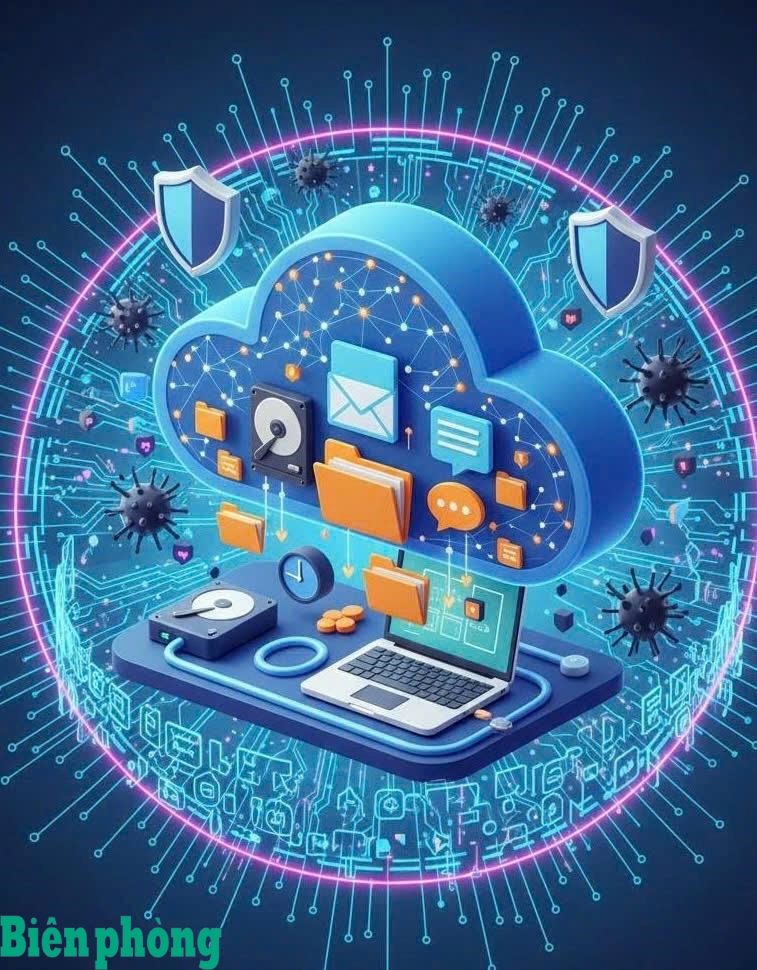 Sao lưu dữ liệu định kỳ và sử dụng lưu trữ đám mây là giải pháp an toàn để bảo vệ các nội dung giao tiếp quan trọng khỏi sự cố kỹ thuật và tấn công mạng. Đồ họa: Thái Bình