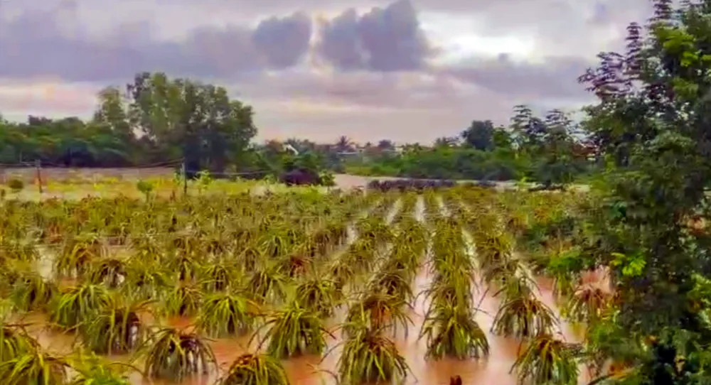 Riêng Hàm Thuận Bắc ngập 160 ha lúa, 135 ha rau màu, 15 ha cây ăn quả; xã Hàm Thạnh ngập 80 ha thanh long và 25 ha rau màu; xã Hiệp Thạnh có khoảng 200 ha cây trồng các loại bị ảnh hưởng.