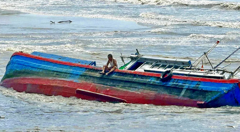 Hình ảnh người ngư dân thẫn thờ trên con tàu chìm là lát cắt đau đớn về gánh nặng mưu sinh và sự tàn khốc của thiên nhiên.