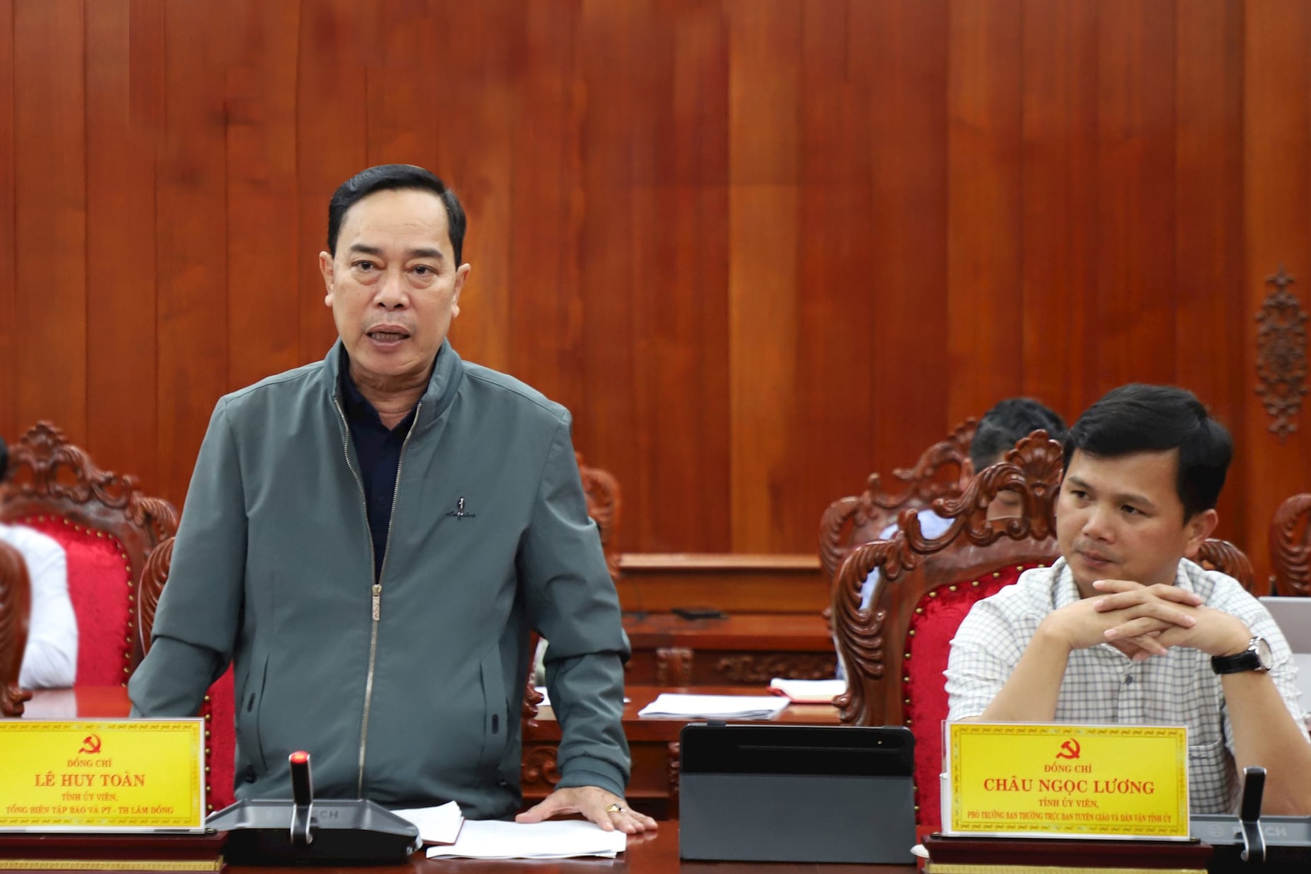Đồng chí Lê Huy Toàn, Tỉnh ủy viên, Tổng Biên tập Báo và Phát thanh, Truyền hình Lâm Đồng báo cáo công tác triển khai truyền hình trực tiếp Đại hội