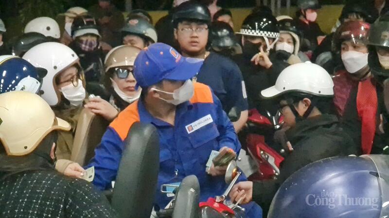 Đến đêm khuya ngày 20/11 vẫn còn rất đông người dân chờ đổ xăng. Ảnh: Lê Sơn