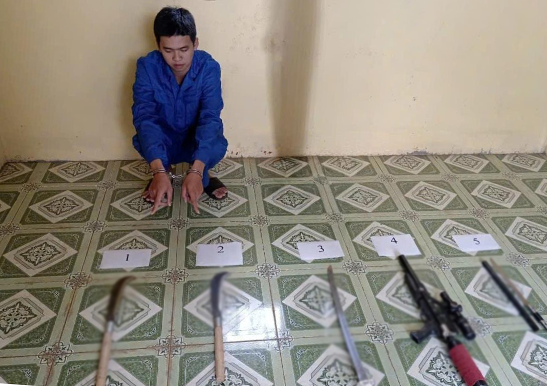 Một đối tượng và hung khí nóng tại cơ quan công an