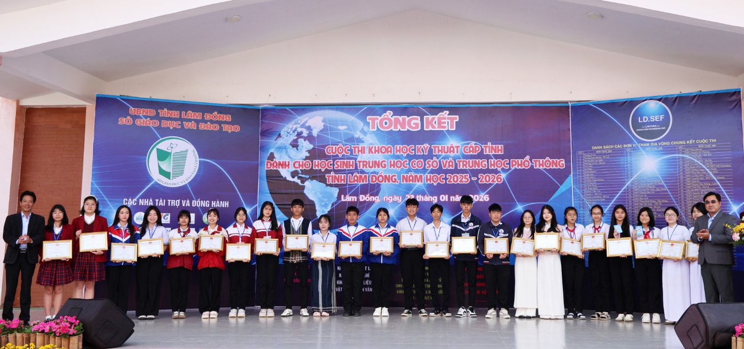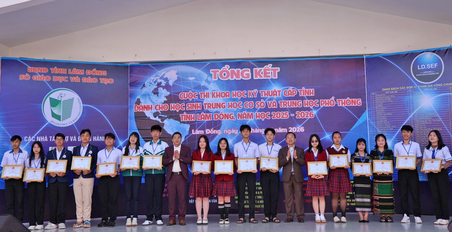 Trên cơ sở đó, Sở Giáo dục và Đào tạo tỉnh Lâm Đồng đã phát động Cuộc thi KHKT học sinh trung học năm học 2026 - 2027, với yêu cầu tiếp tục đổi mới cách tổ chức, đẩy mạnh giáo dục STEM, tăng cường ứng dụng khoa học - công nghệ hiện đại; đồng thời mở rộng sự phối hợp giữa nhà trường với các viện nghiên cứu, trường đại học, doanh nghiệp và các nhà khoa học nhằm nâng cao chất lượng, hiệu quả hoạt động nghiên cứu khoa học trong trường phổ thông.