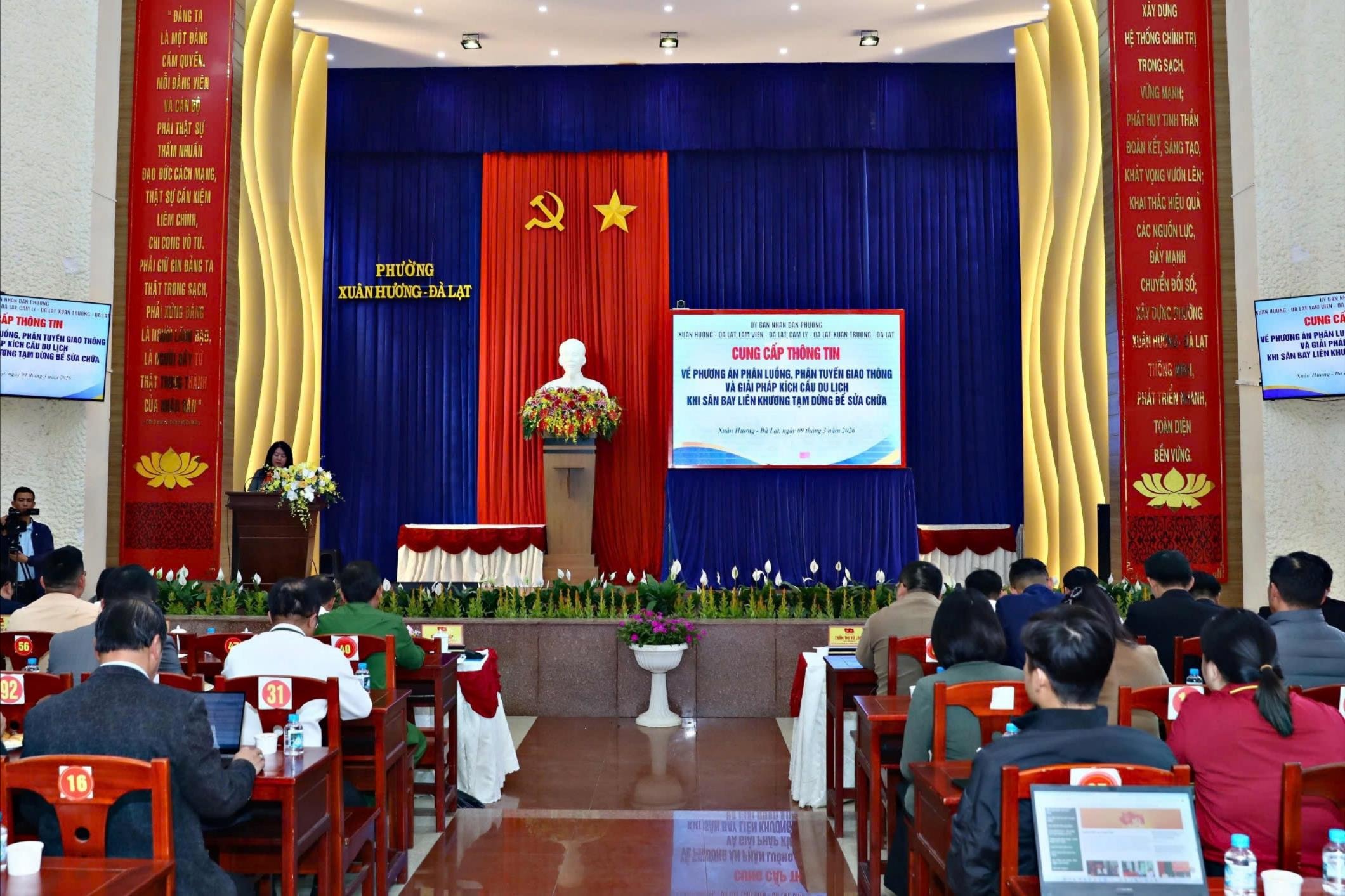 Phát biểu khai mạc hội nghị, Chủ tịch UBND phường Xuân Hương - Đà Lạt Trần Thị Vũ Loan cho biết, theo quyết định của Tổng công ty Cảng hàng không Việt Nam, Cảng hàng không quốc tế Liên Khương sẽ tạm dừng khai thác từ 0 giờ ngày 4/3/2026 đến 23 giờ 59 phút ngày 25/8/2026 để thi công sửa chữa, nâng cấp đường băng.