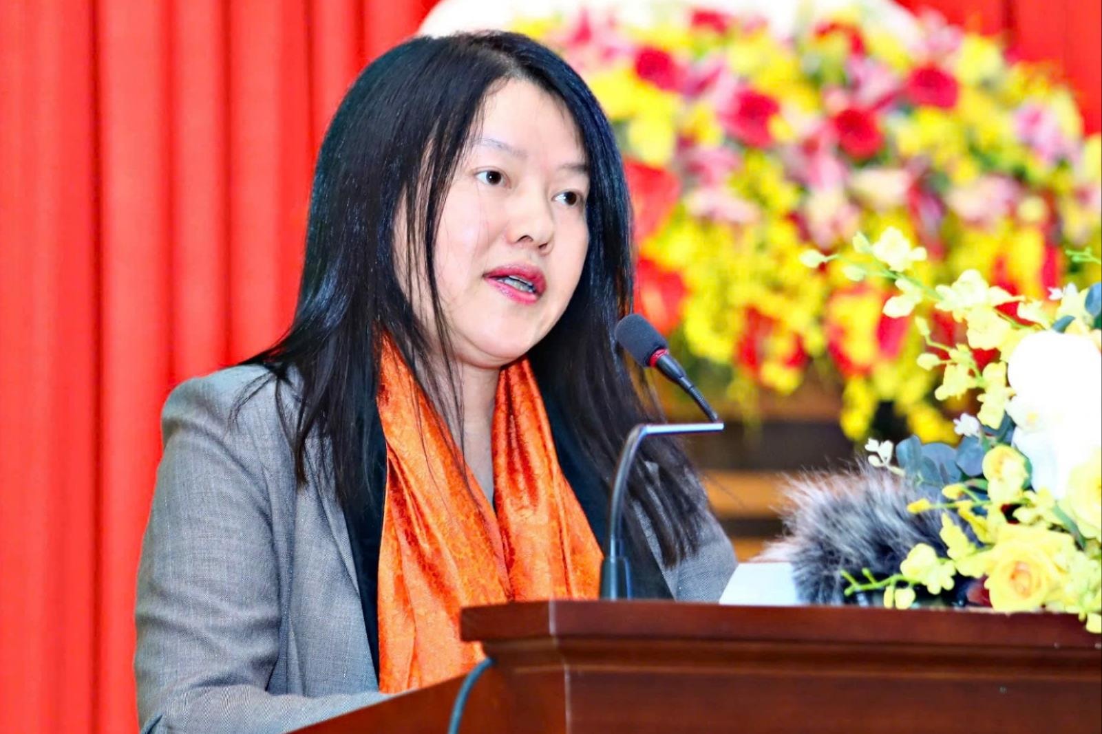 Chủ tịch UBND phường Xuân Hương - Đà Lạt Trần Thị Vũ Loan phát biểu tại hội nghị