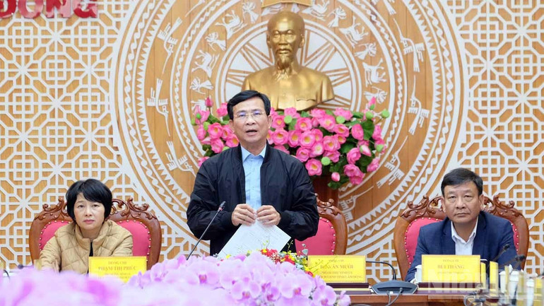 Chủ tịch Ủy ban nhân dân tỉnh Lâm Đồng Hồ Văn Mười báo cáo Thủ tướng Chính phủ về tình hình khắc phục thiên tai và triển khai công tác ứng phó bão số 15 trên địa bàn tỉnh.